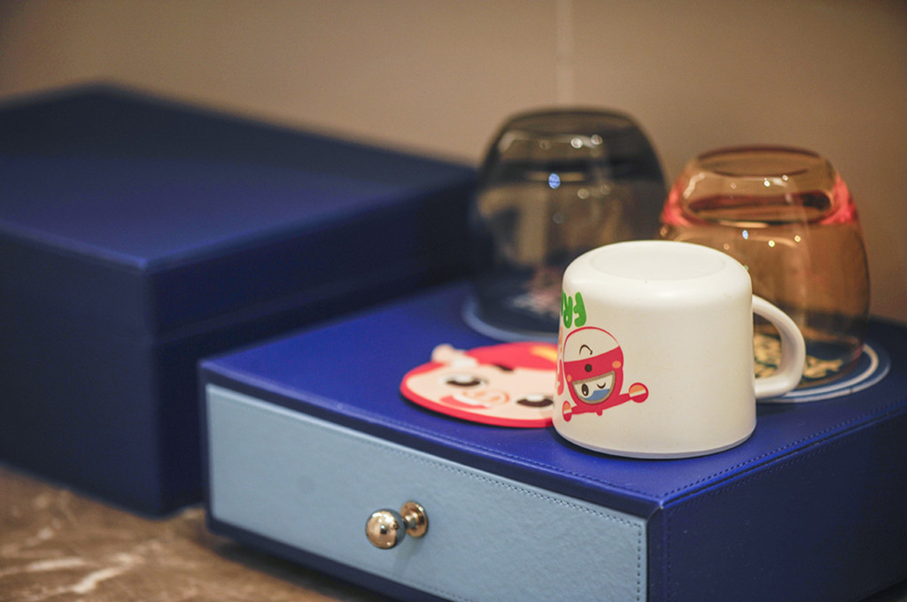 主题餐具充满童趣,一定深受孩子的喜爱。甚至连浴室厕所颜色都非常缤纷。我也好想变成孩子呀,享受童年的乐趣。