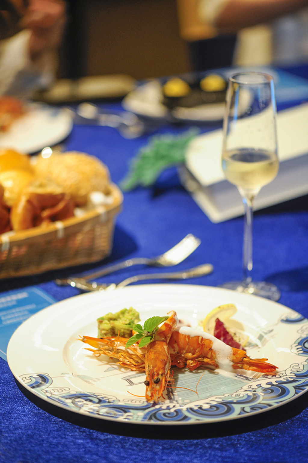 白葡萄酒配 上海 鲜盛宴,精彩的晚宴开启。杯酒筹措,星光浪漫,海风徐徐.