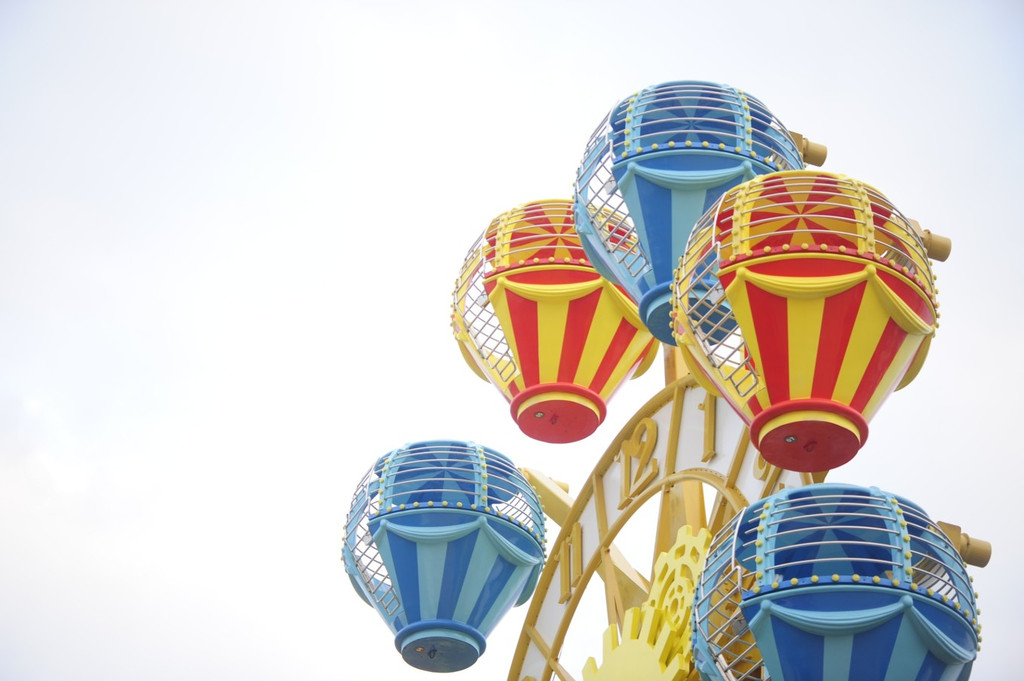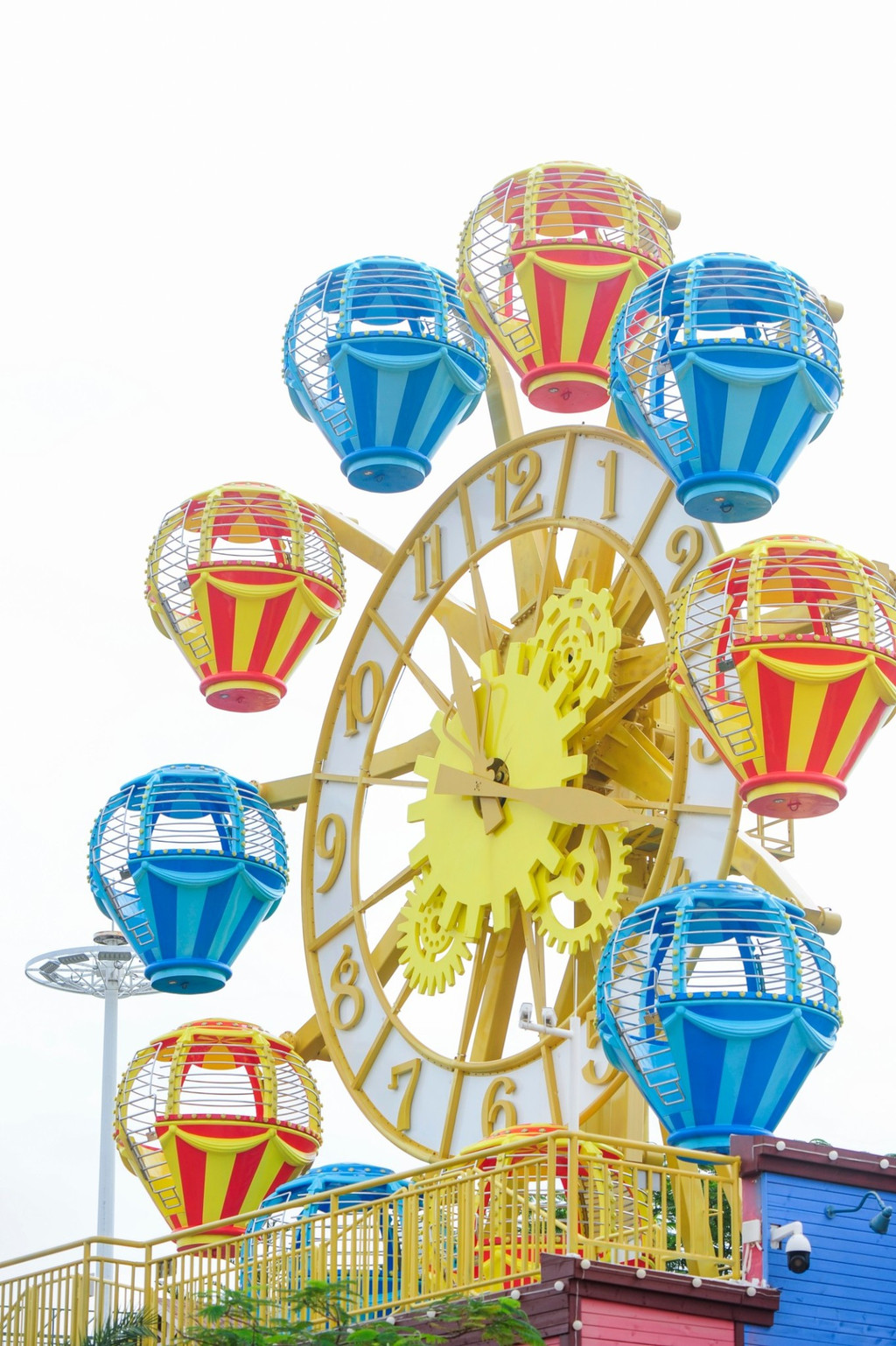 可爱的摩天轮,颜色缤纷,坐在二层就能看到园区景致,眺望远处大海。