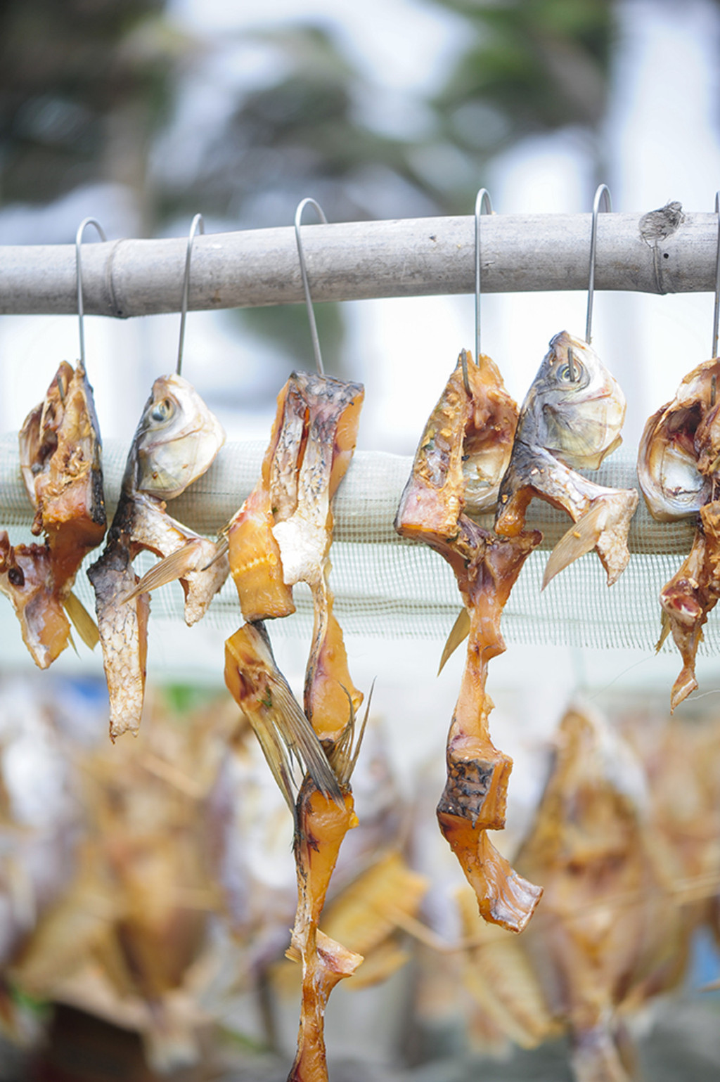 海边挂满了腊鸭腊鱼,还有各种土货,看得我眼花缭乱。这想买一点,那也想买一点。