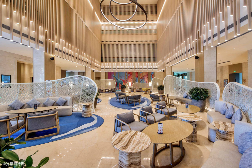 酒店由鼎龙集团与国际酒店巨头万豪酒店集团联袂打造,经全球著名设计事务所HBA操刀设计,置身于无边无际的滨海之畔,环境得天独厚,设计上也从自然环境中获取灵感,可谓“采海洋之灵”,集当地传统文化特色,不辜负大自然赋予的每一份生命力和纯粹感。