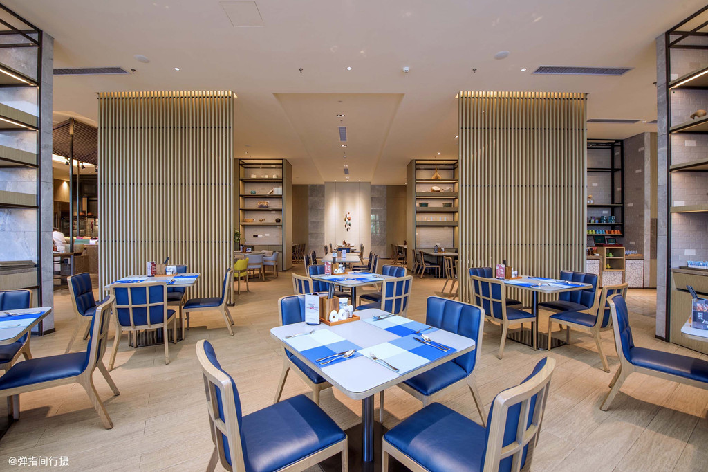 不得不提的是,酒店餐厅还设有户外亲水用餐区,采取独特的下沉式设计,极具几何美感,且开阔的水面环绕用餐区四周,宾客在用餐时可以尽情拥抱鸟语花香,尽情感受大自然的气息。