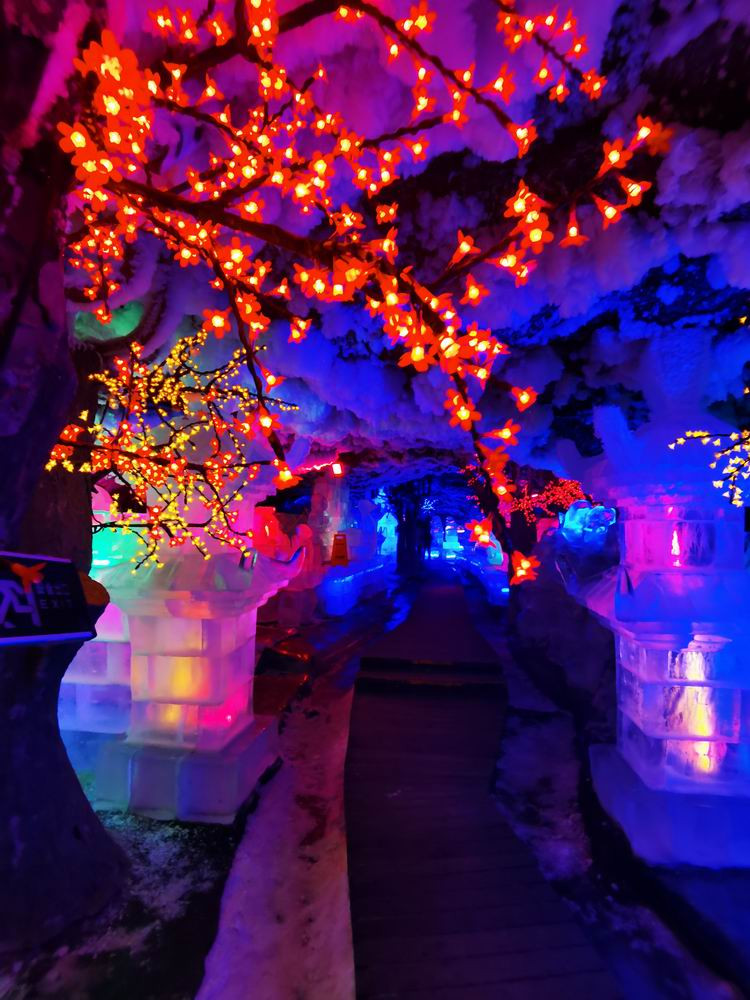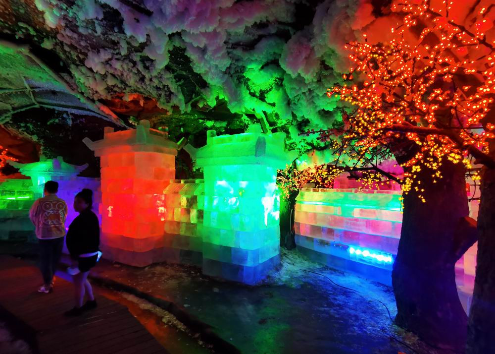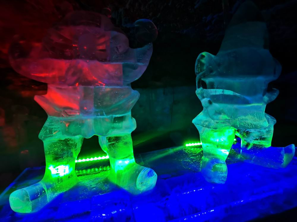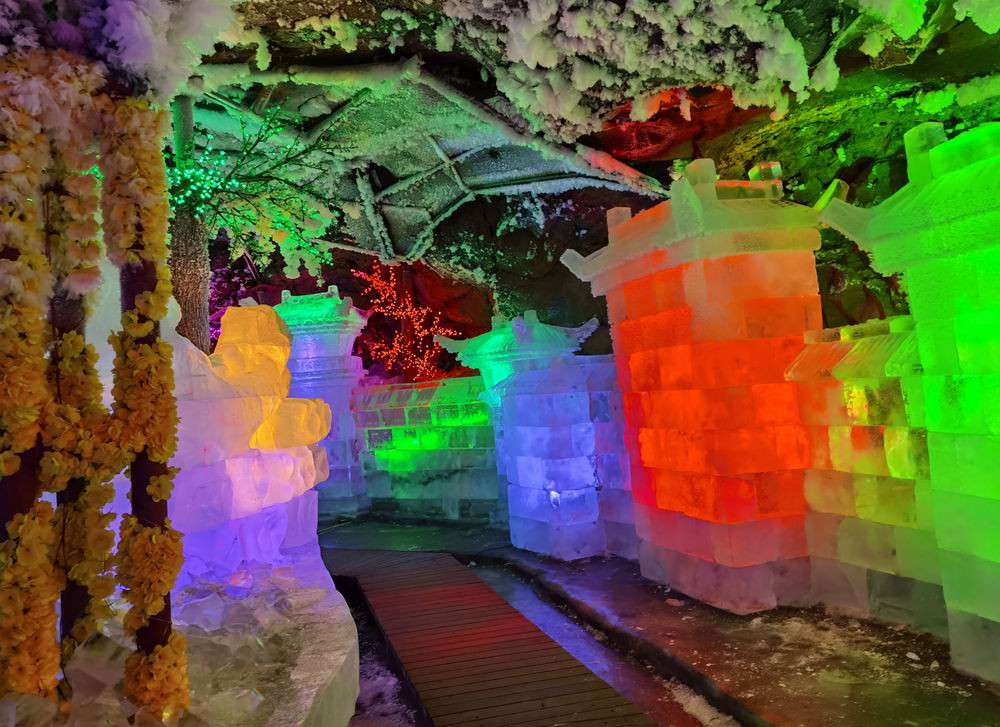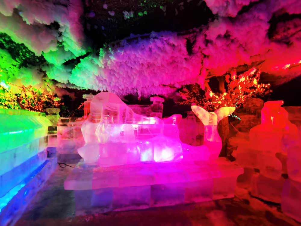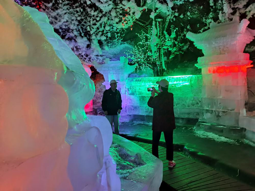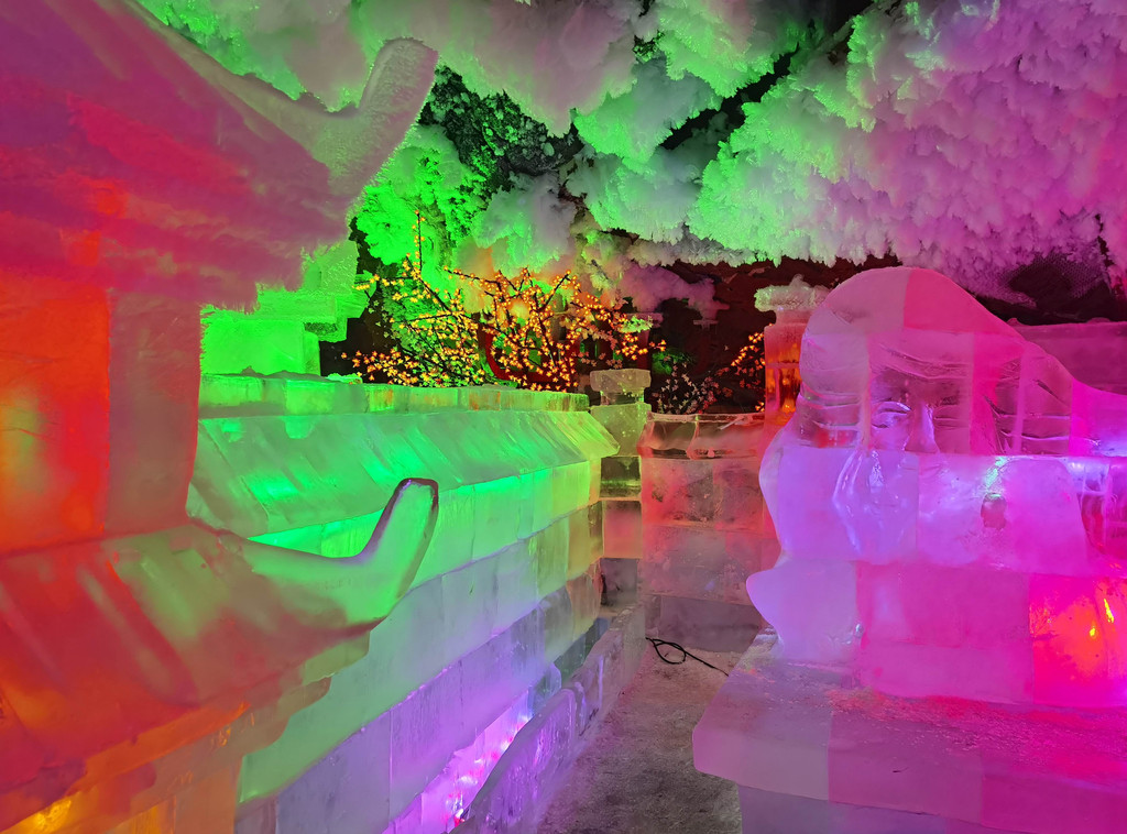 除了声光电和纯天然景致外,这里还有很多人工的冰雕。