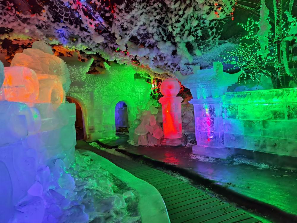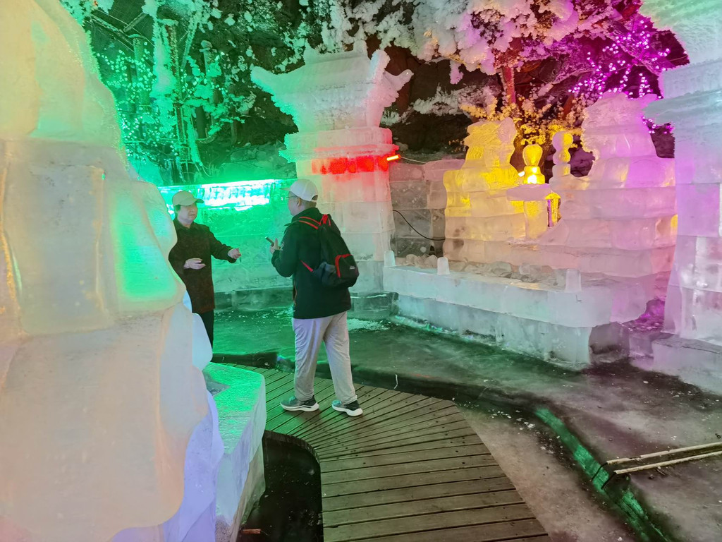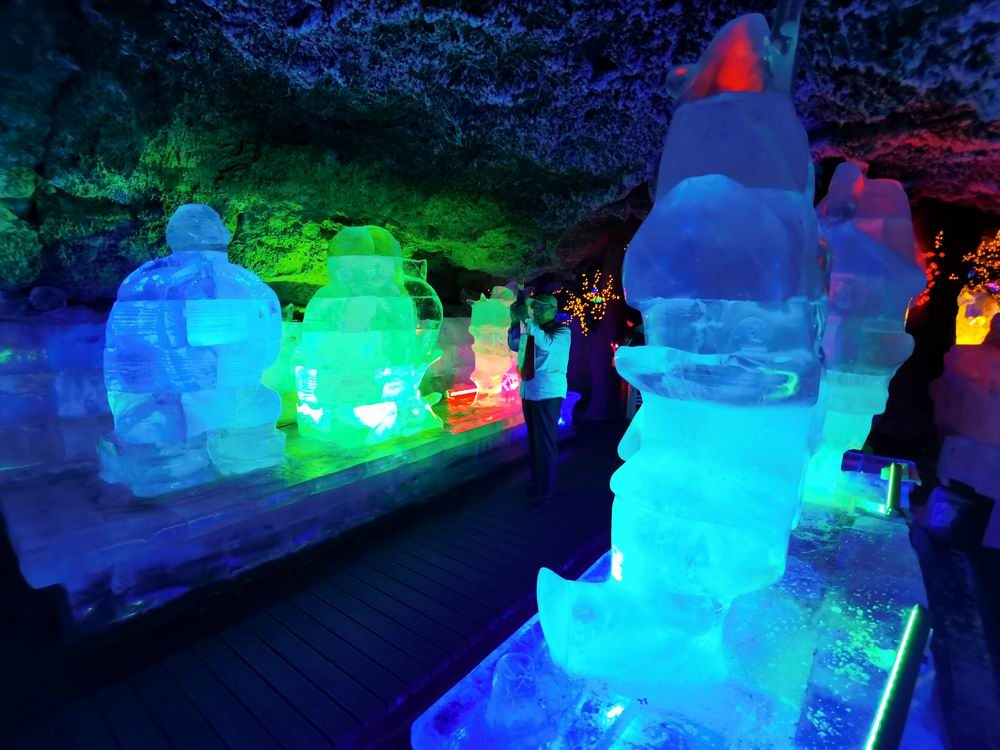 东北的冬季看到冰雕不足为奇,但在这里能体会到“夏日里的冬天”,确属一件奇事。