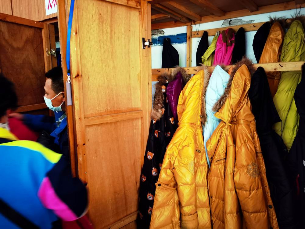 老人们在冰洞内,尽情拍照。