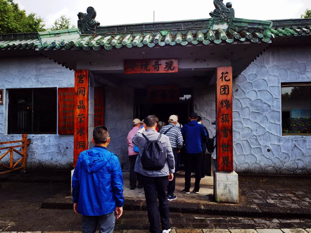 我们的旅游日程正当盛夏,洞外赤日炎炎,酷热难当;但洞内皆冰皆霜,寒气逼人,平均温度在零下5℃。必须再花10元钱租一身棉大衣。
