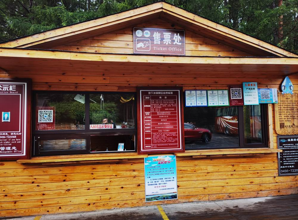五大连池冰洞很多,主要有水晶宫、白龙洞、女神洞等,在五大连池风景区的东部,位于西焦德布山北侧。我们参观的是水晶宫。图为水晶宫的检票口。