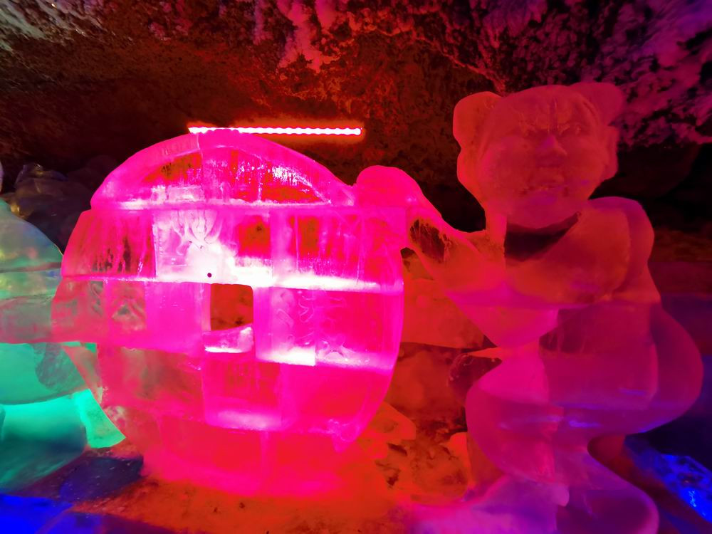 深入洞中,看看造型各异、生动活泼的冰雕。