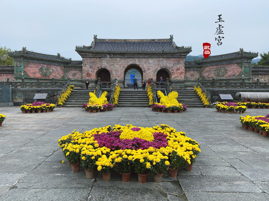 下了山,在武当山门公交站搭乘203路公交车,几分钟便可到达玉虚宫步行街站。穿过步行街,走过“玄天玉虚宫”的山门,便是玉虚宫了。虽然经过多次天灾人祸,但是这玉虚宫屡次重修,至今仍然是武当山下最值得一看的宫殿之一。