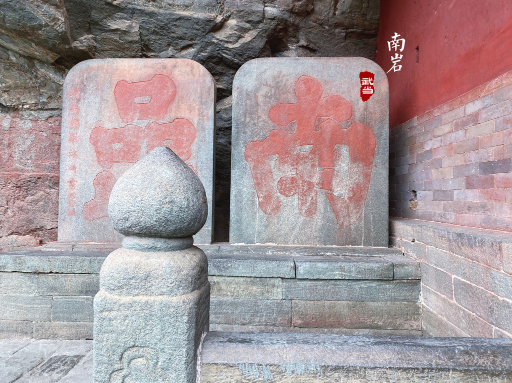 与紫霄宫的鸽子说了再见,我就搭车向下一站南岩进发了。在乌鸦岭下车,道路在这里分成两条——左边通向金顶,这便是上次登山的路,全程大约需要三个小时;右边通向南岩宫,它就在前面山崖上召唤着我。