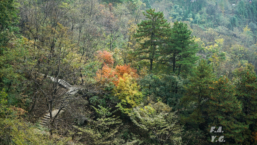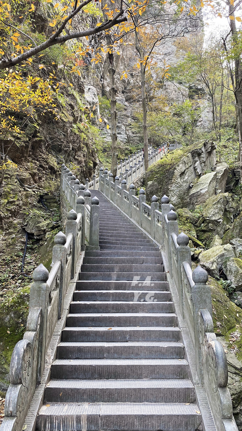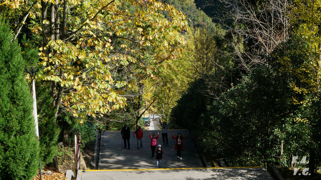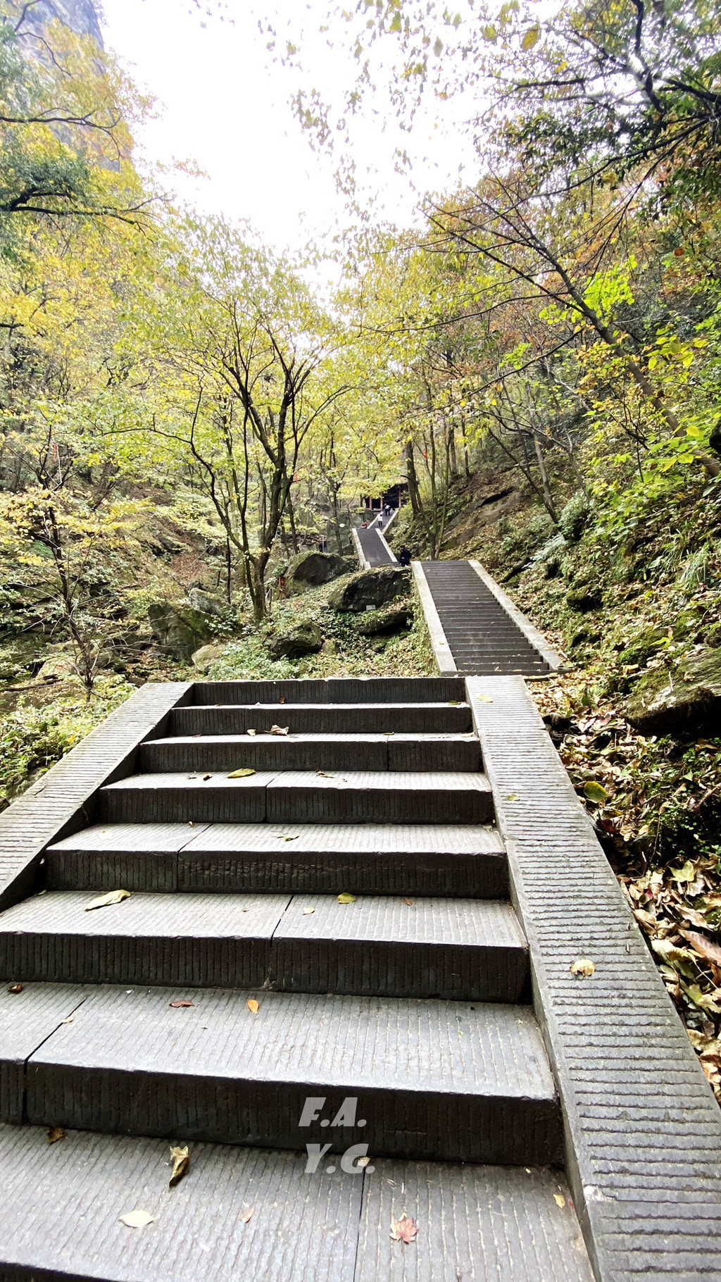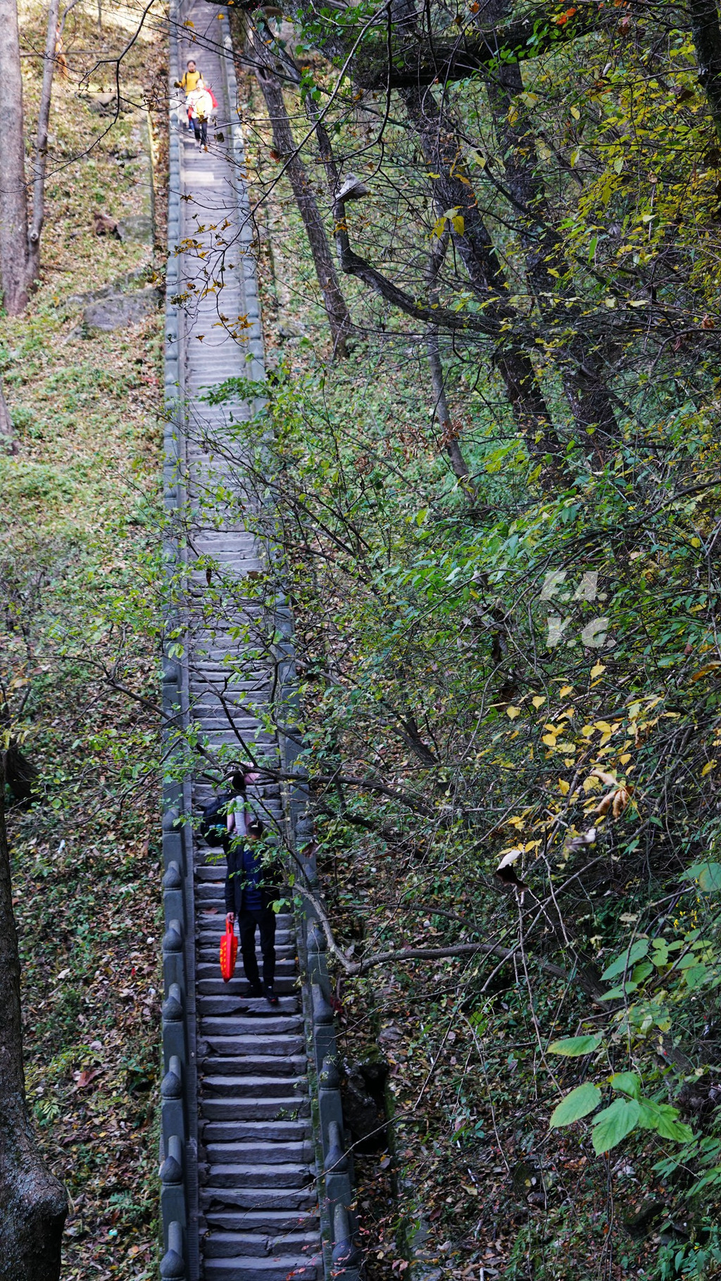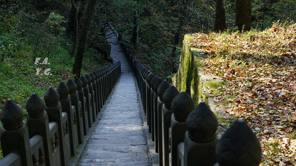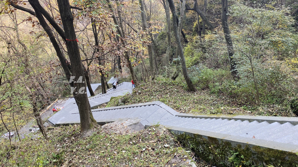 经过一天门,朝下一望,又是笔笔直的下行台阶。
