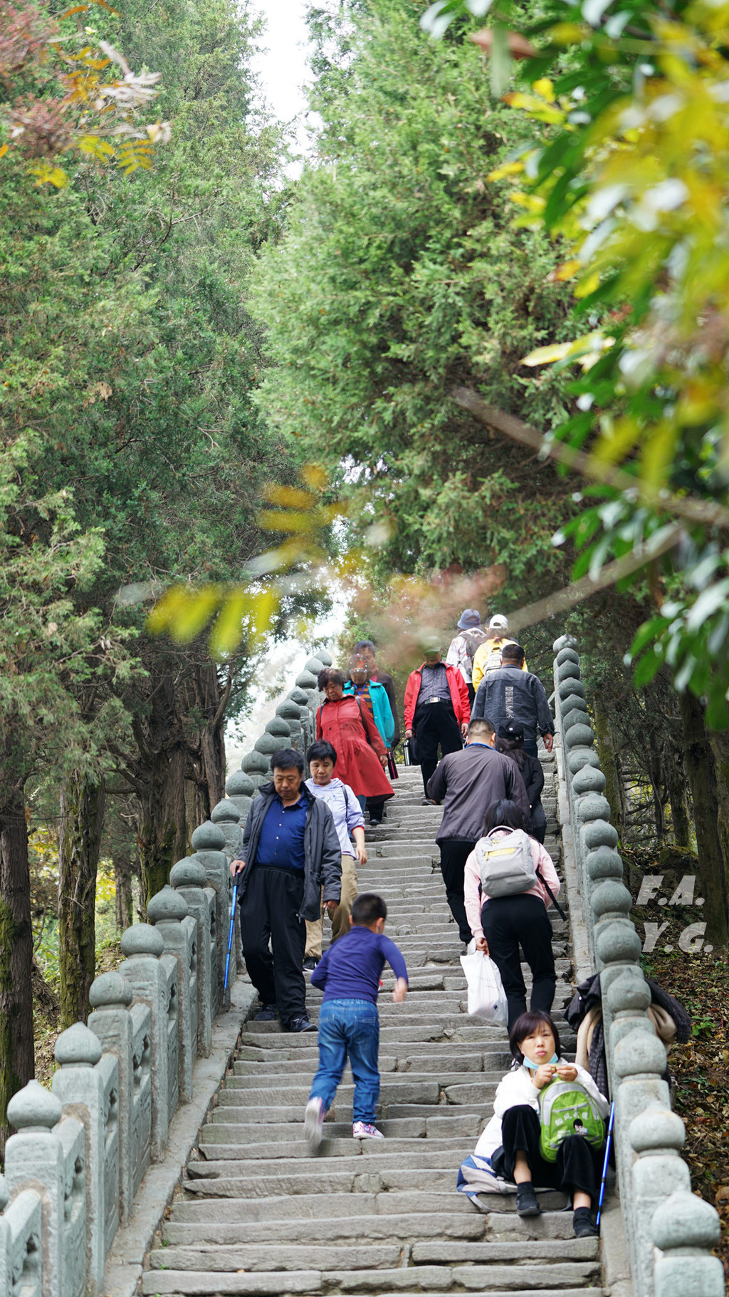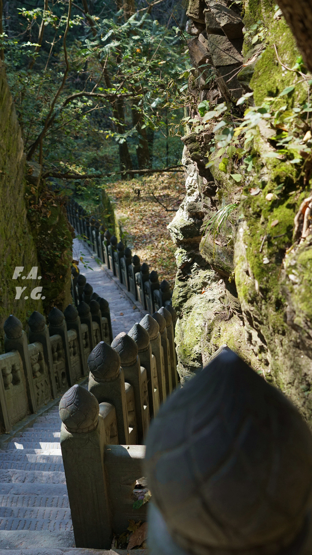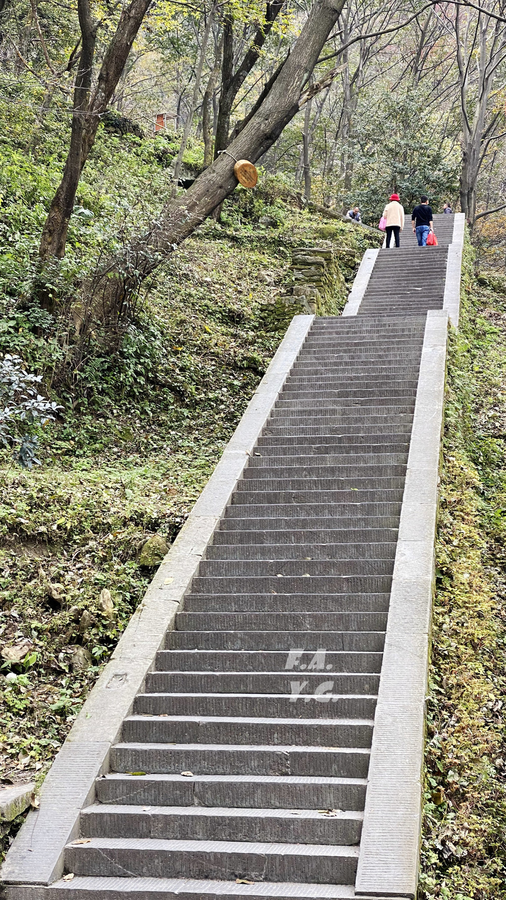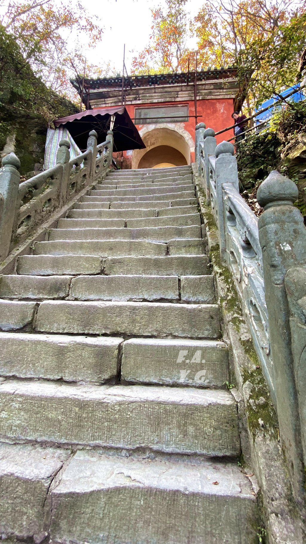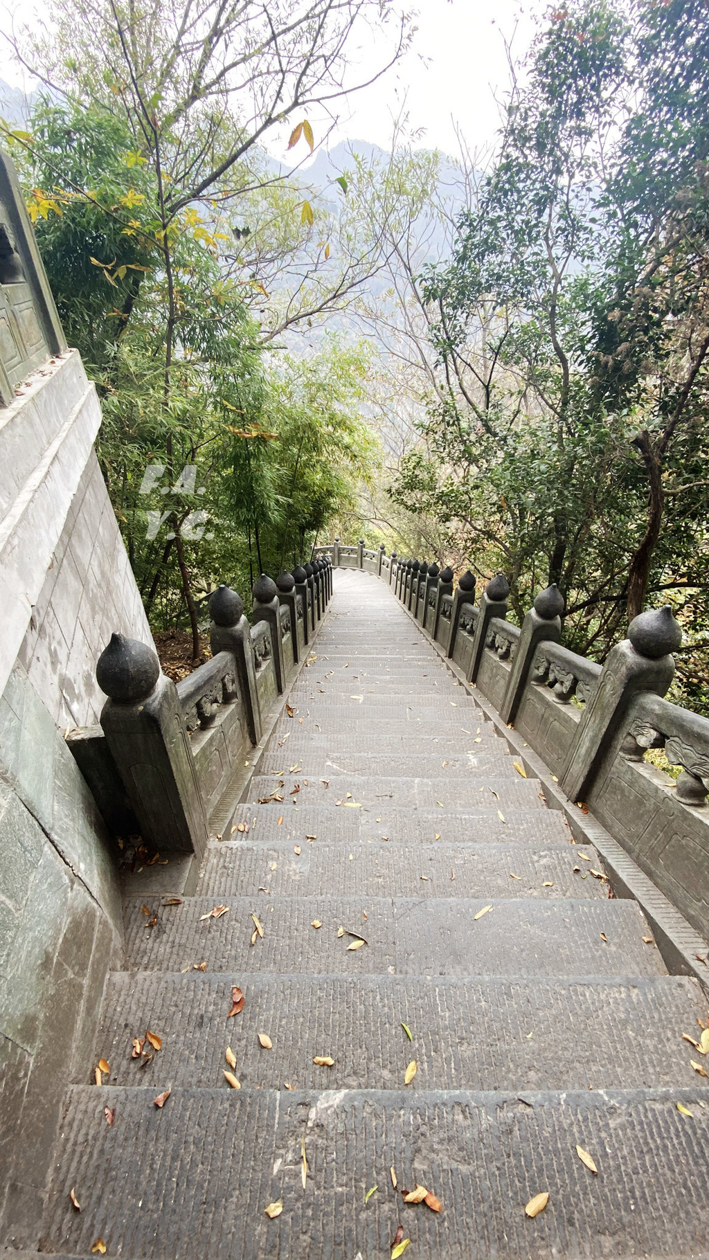 经过一天门,朝下一望,又是笔笔直的下行台阶。