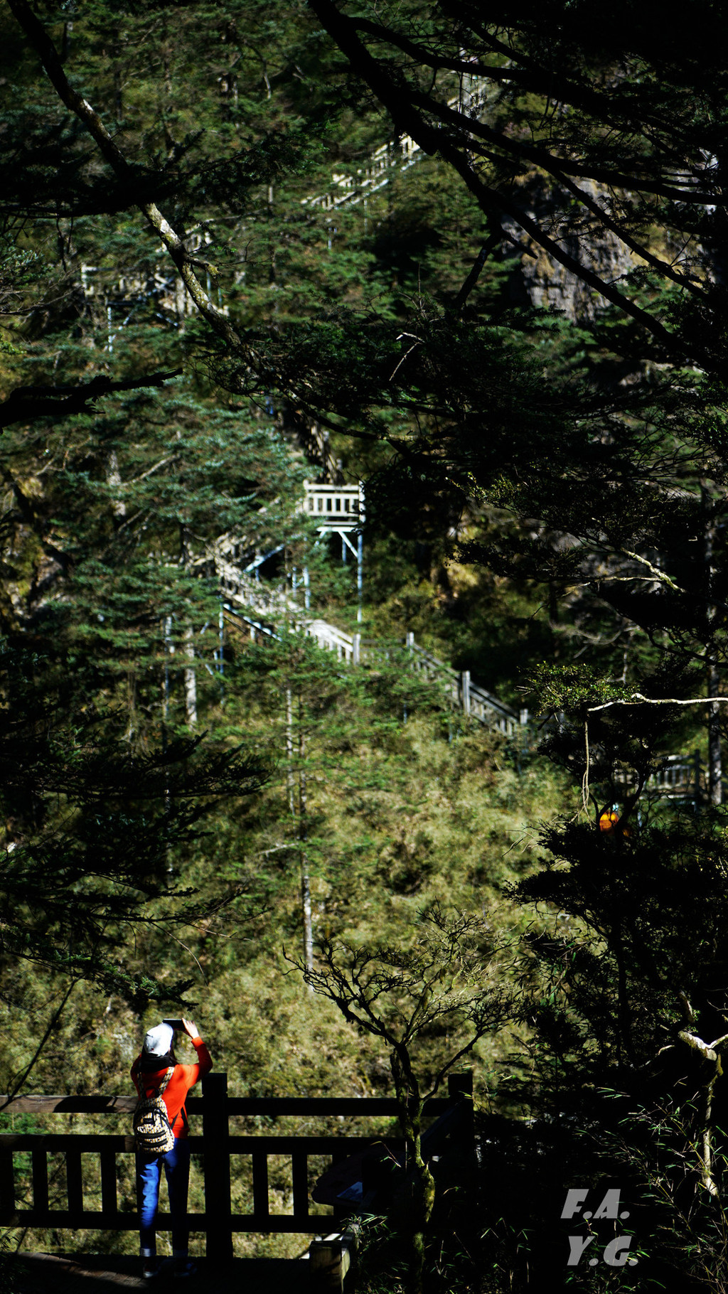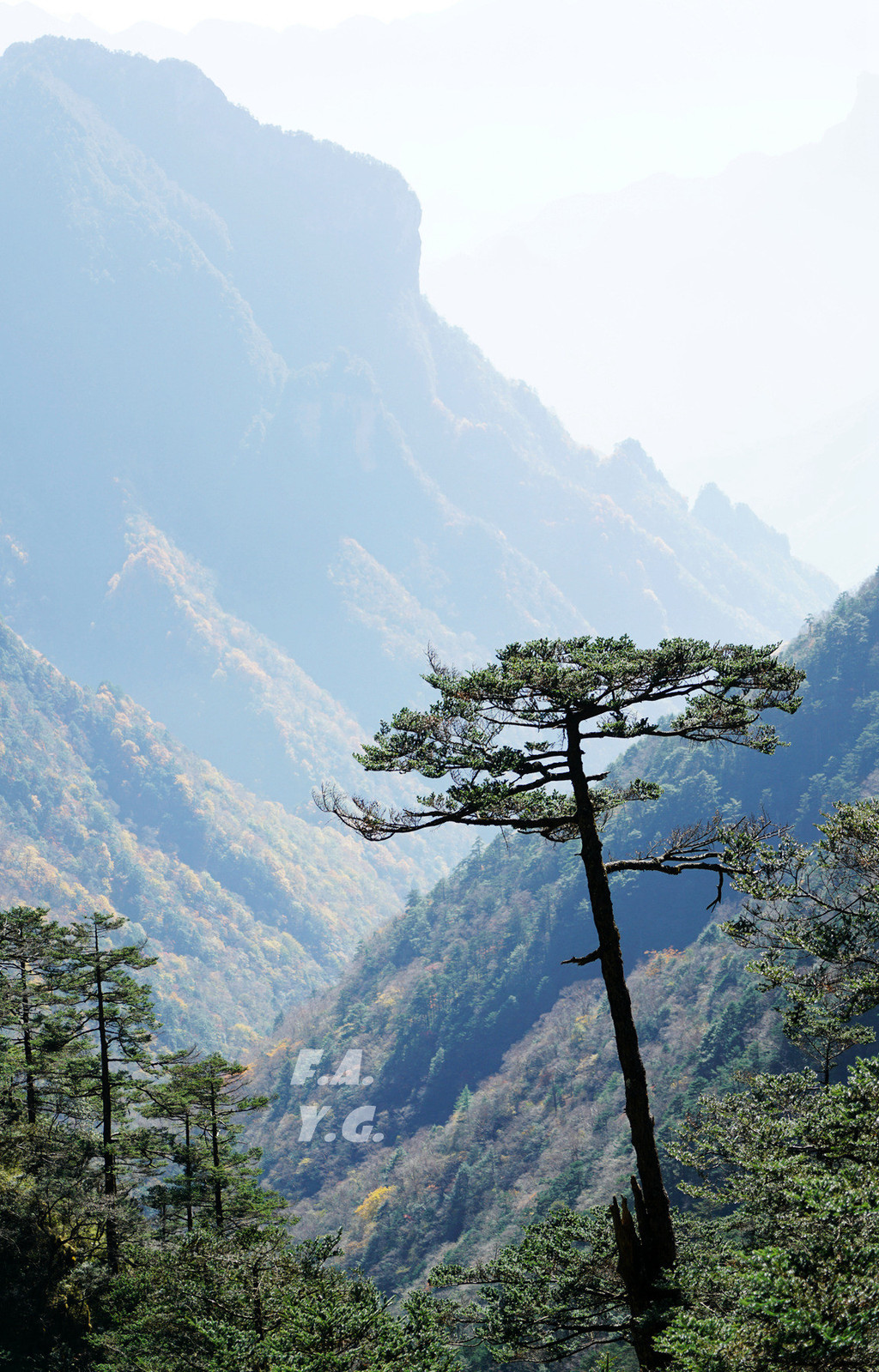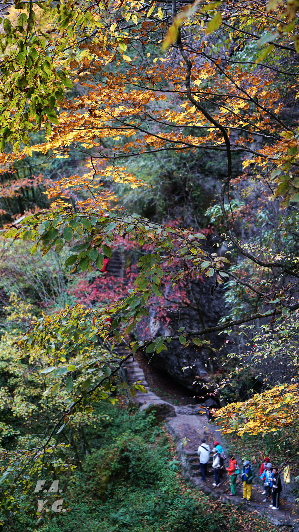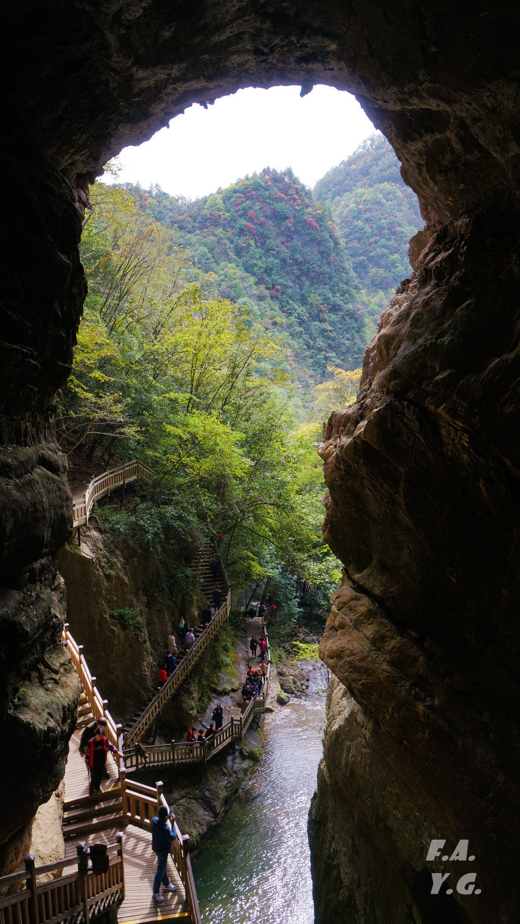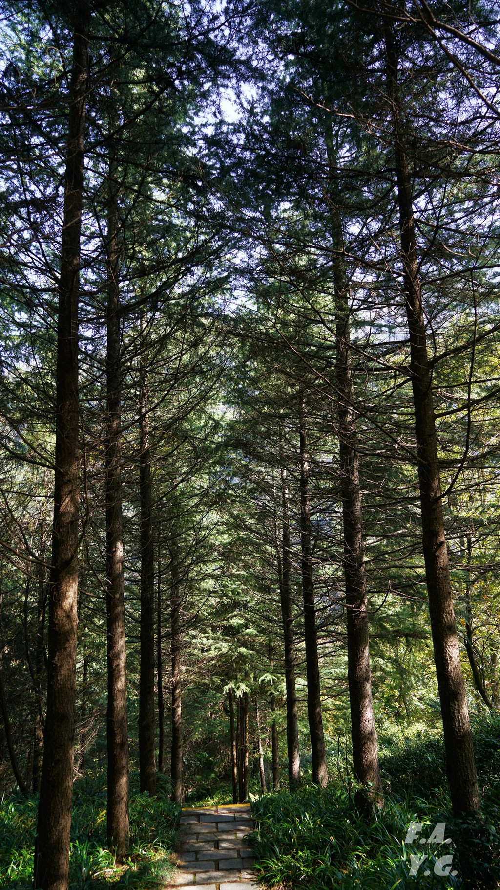 经过一天门,朝下一望,又是笔笔直的下行台阶。