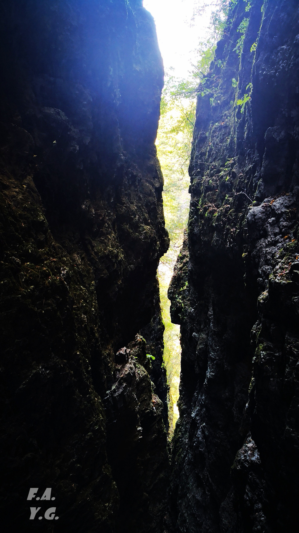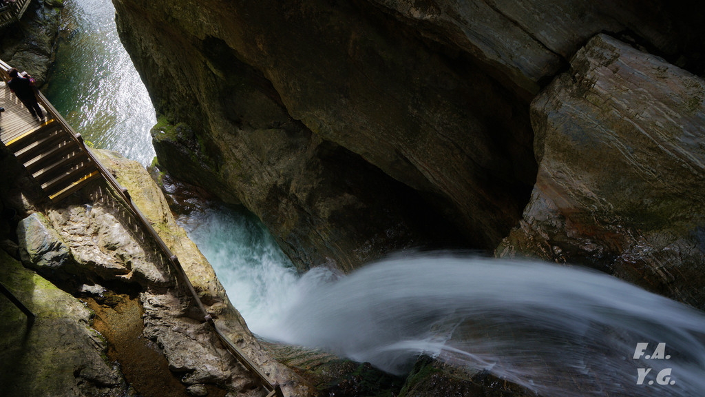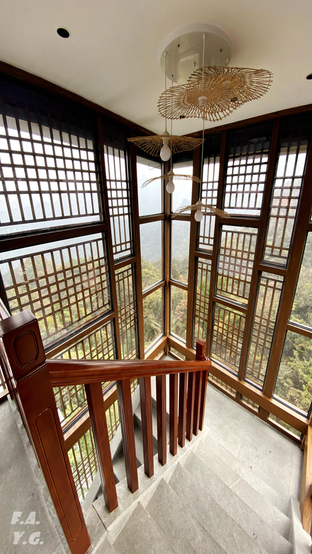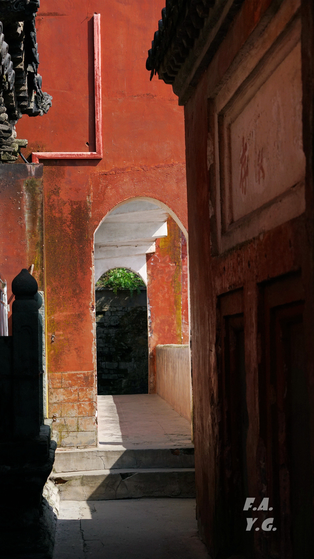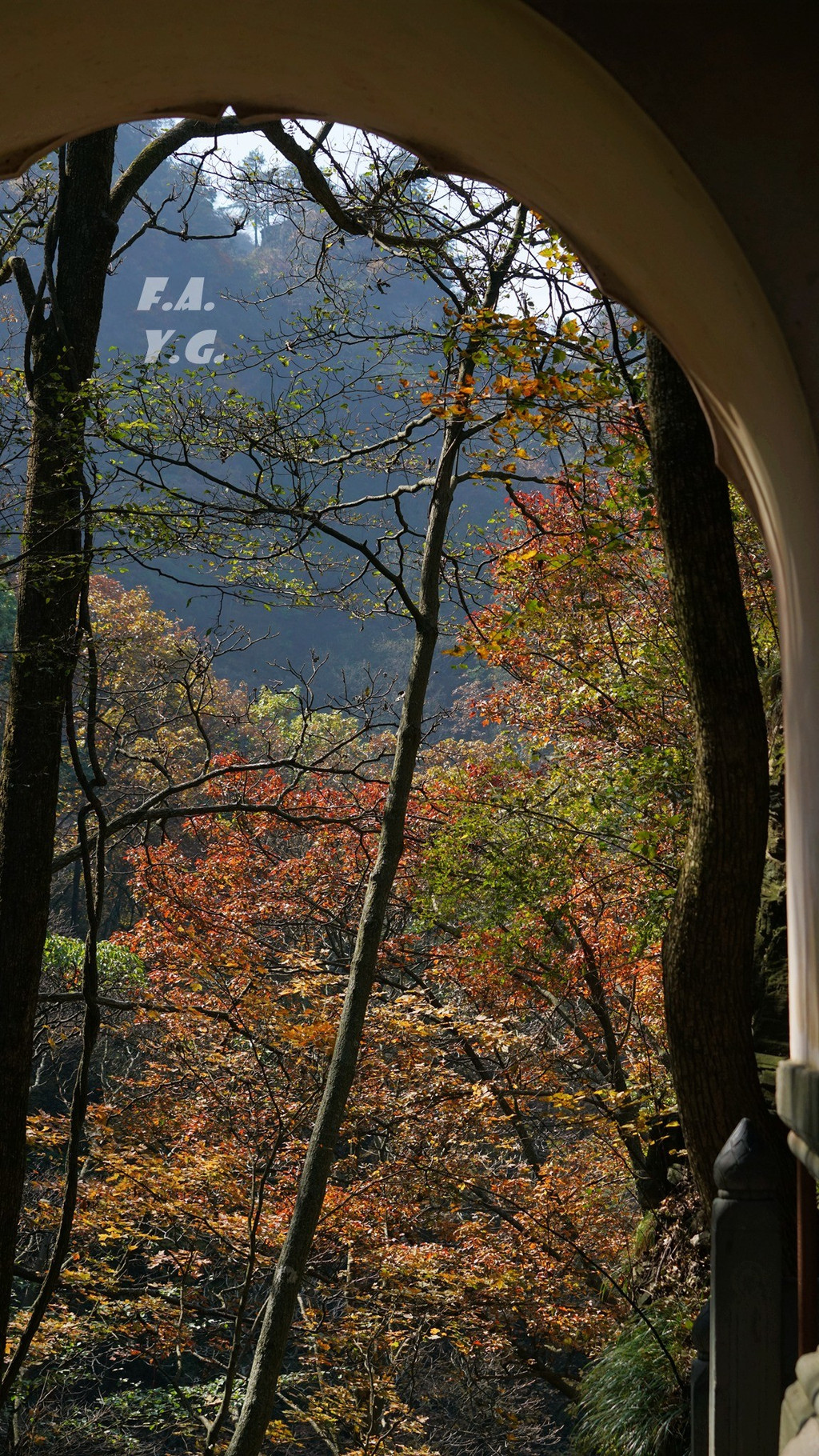 经过一天门,朝下一望,又是笔笔直的下行台阶。