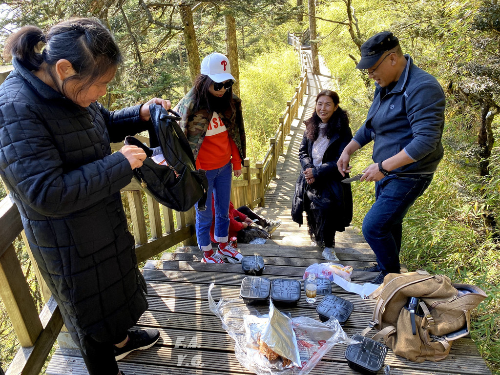 乘坐先进的交通工具下了金顶到达琼台。金顶和琼台之间也有步行石道可往返。