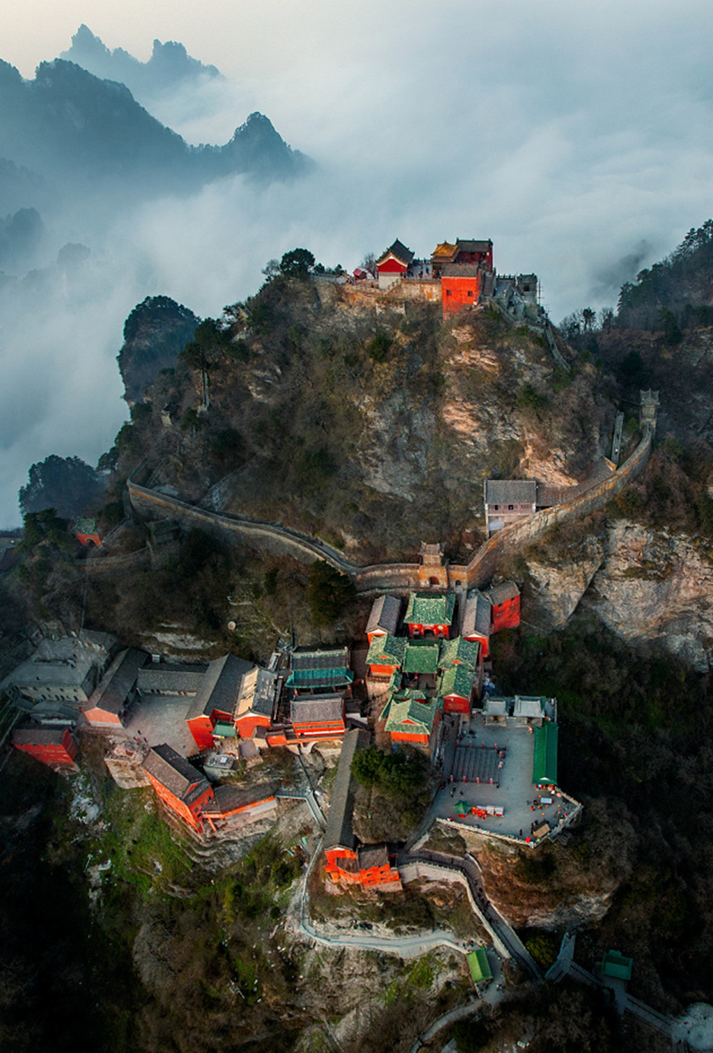 几年后永乐帝下诏建墙:“今大岳太和山顶,砌造四周墙垣,其山本身分毫不要修动。其墙务在随山势,高则不论丈尺,但人过不去为止。务要坚固壮实,万万年与天地同其久远。”