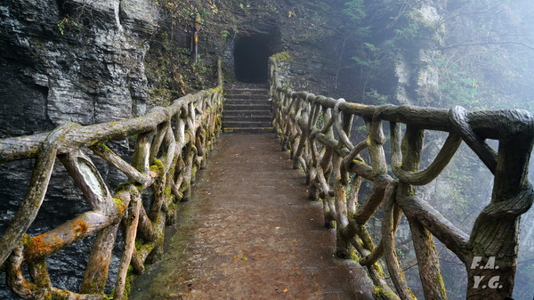 一天门后的会仙桥处,连续直上的石阶看傻我的眼。