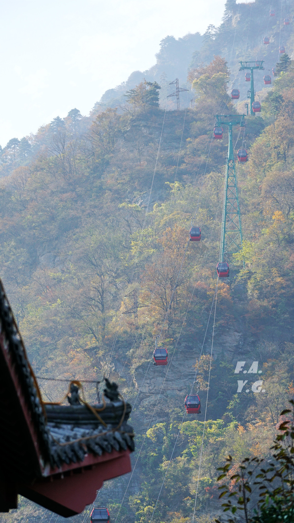 几百年前的古人啊,终究是想不到他们从山下到山顶、需要花费几个时辰的艰辛路程,后人可以通过先进发达的科学技术手段几分钟内就快速到达。