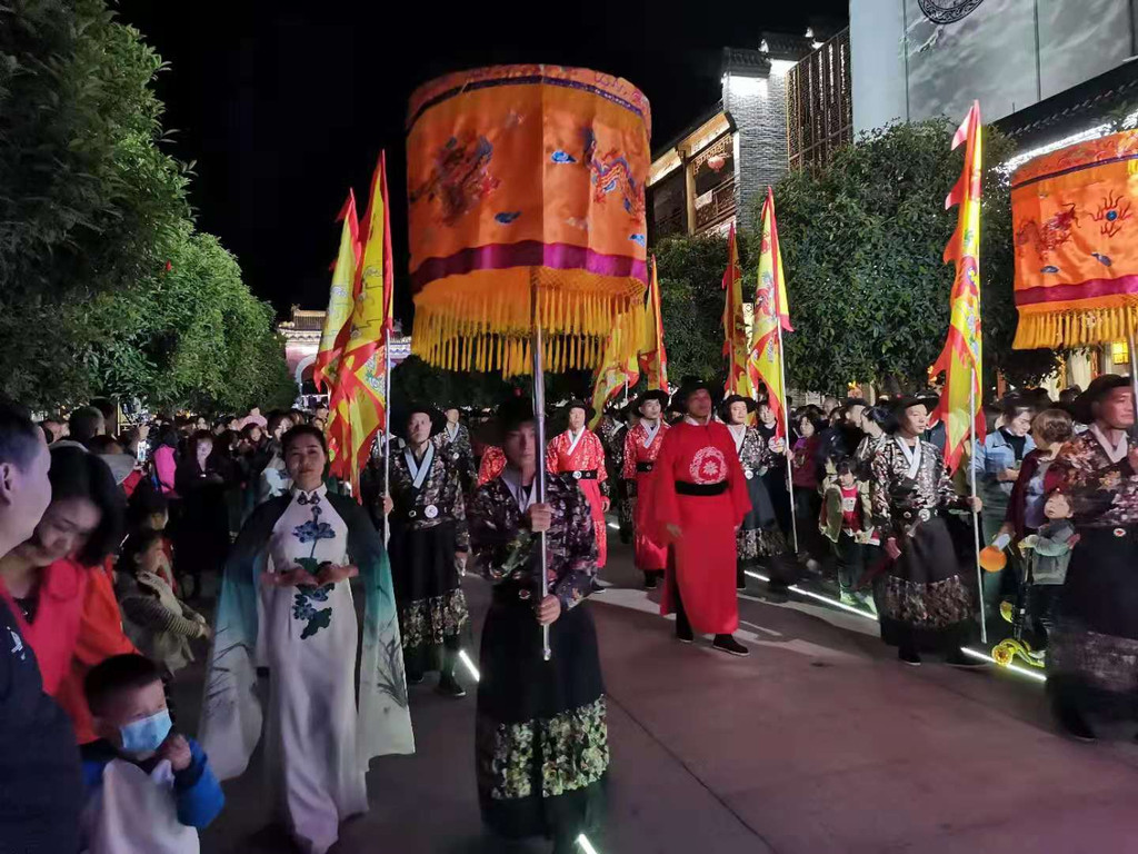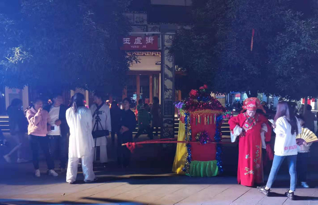 询问酒店前台,刚好周六,与酒店仅隔300米的武当永乐玉虚步行街正举行庙会(当地人说是每周五、周六、周日举办庙会),可以边品偿武当地方特色小吃,边看表演,街上武当道乐、舞狮、龙灯、好不热闹,同时,街道两侧武当民间手工艺品(绣品、剪纸、唐人等)特色商品琳琅满目,我们逛了很久,一路品偿了武当地方魔芋、土豆、红暑粉汤等小吃,女儿说困后回到洒店。