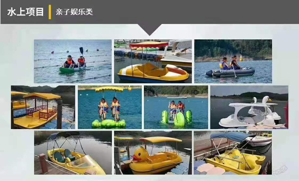 亲水项目有适合小孩子玩的碰碰船、水战船及脚踏船等。
