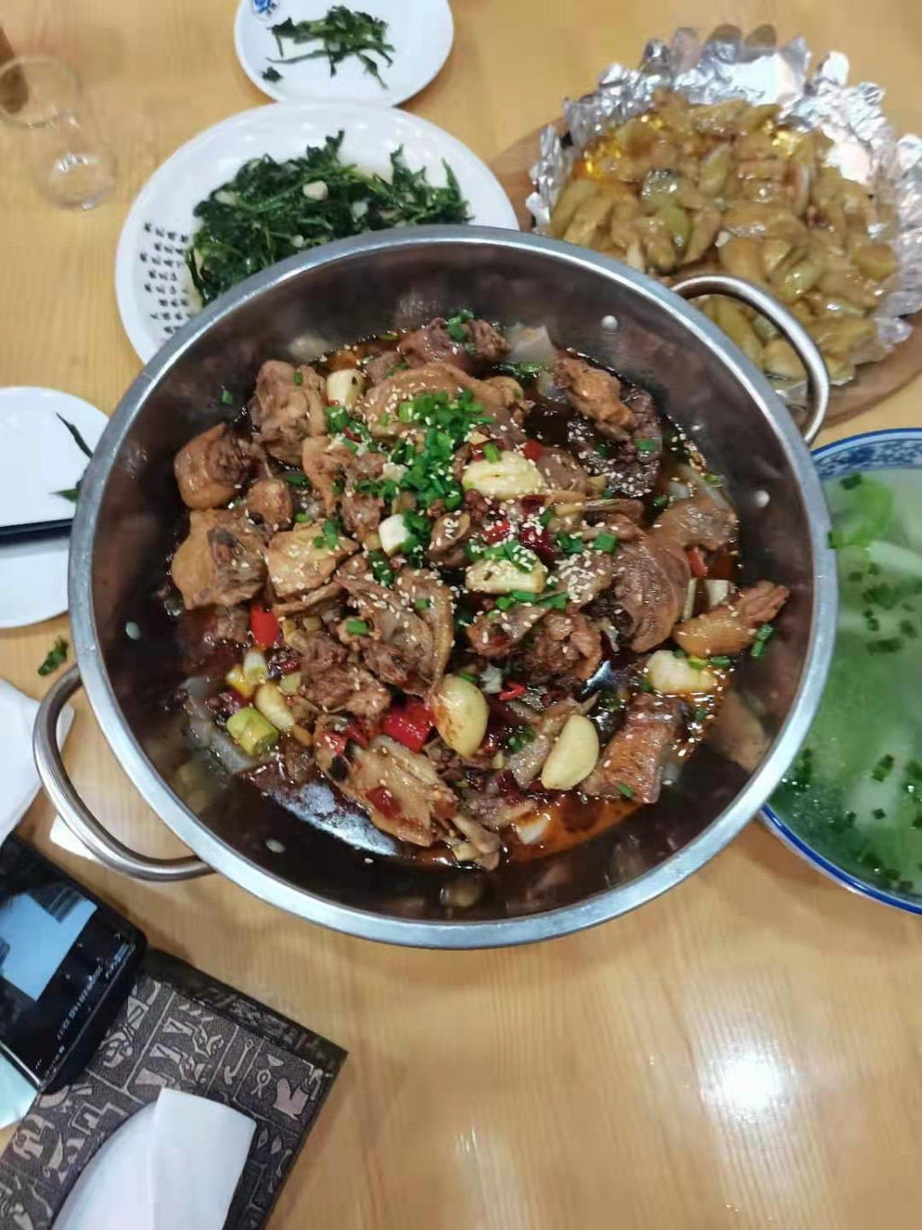 这时,已是午餐时间了,我们选择了码头附近的太极鱼乡餐厅,听导游小姐姐说这里鱼做得不错,就在返程的316国道边上,我们品偿了当地独有的翘嘴白鱼、武当山珍等,女儿直夸好吃呢.....