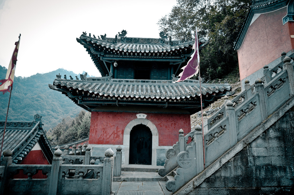 明永乐帝封为“紫霄福地”,建筑精美,文物众多,紫霄大殿是武当山保存下来唯一一座重檐歇山式木结构建筑。