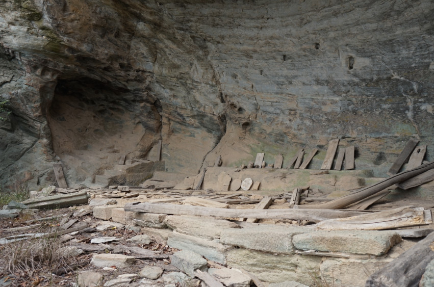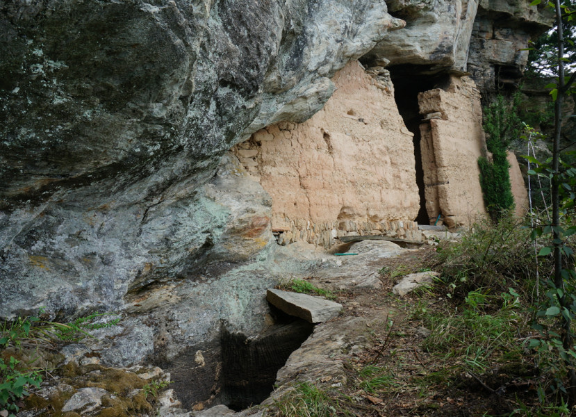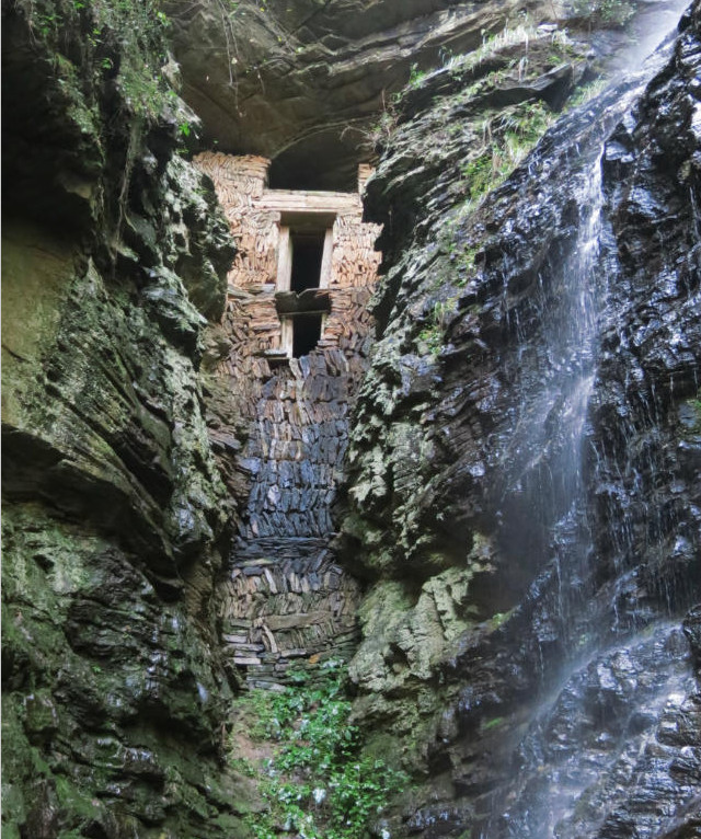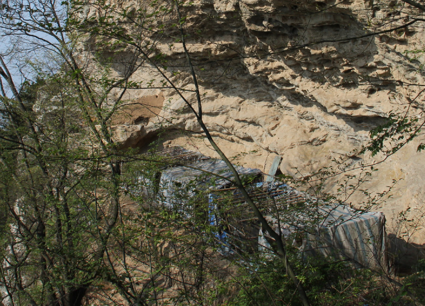 金华洞,在仁威观到隐仙岩之间蝴蝶谷(金华洞沟上去经过赵家垭500米到右侧山沟,存有部分土墙及2无头神像,旧有2层楼。。