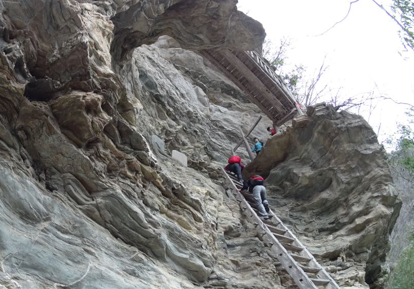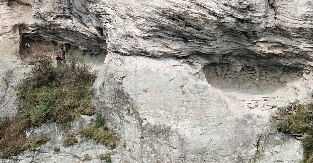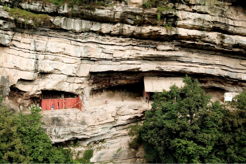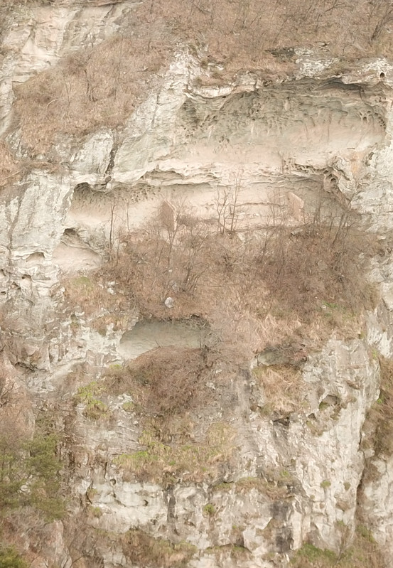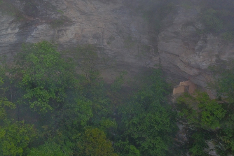 41太玄洞,在索道半途可看到北侧太玄洞,有5层,明代2篇游记记载白玉岩和太玄洞的密密麻麻的如同蜂巢的道房,应该就是太玄洞、白玉岩。。