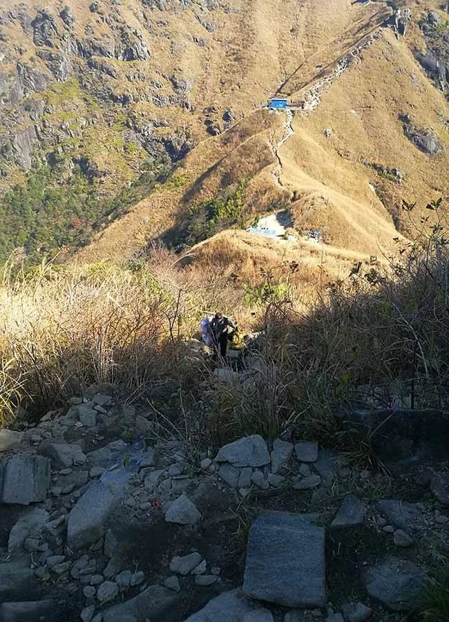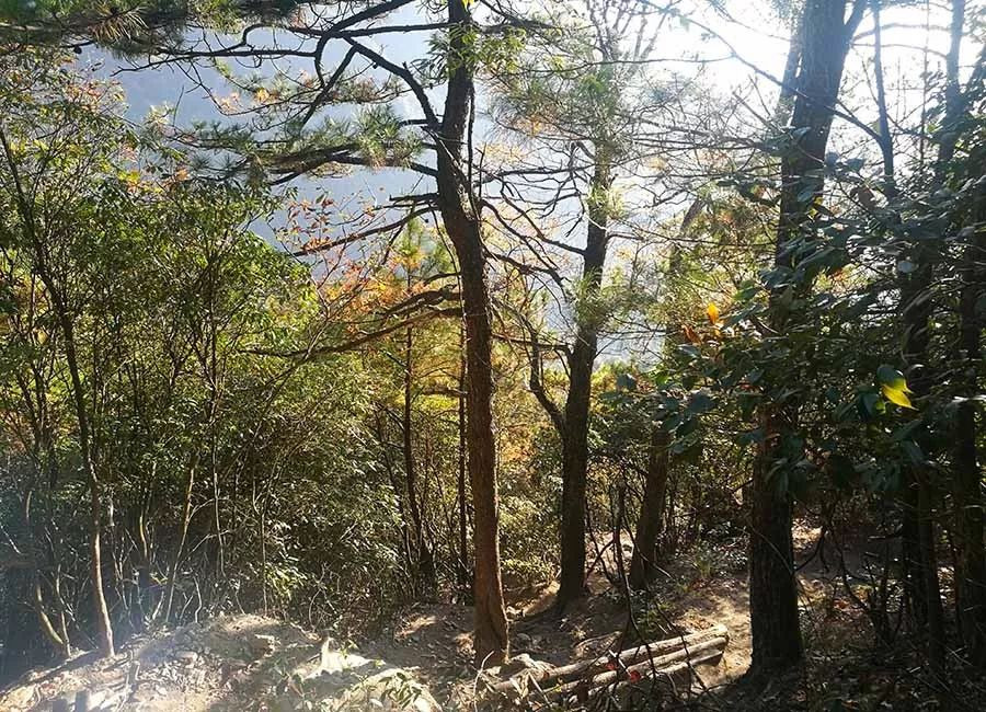 下山的路石头树根相伴,陡,只有偶尔上山的人群,根本无人下山。