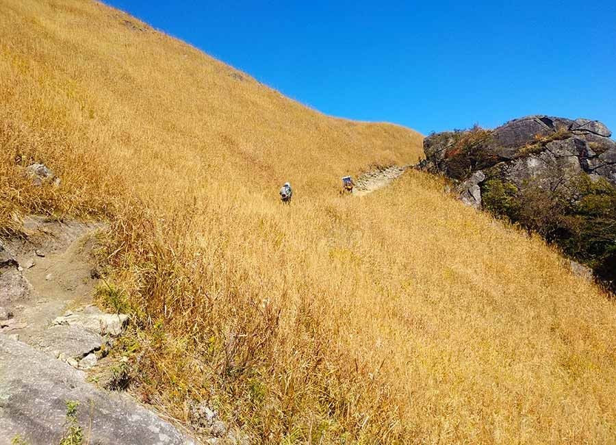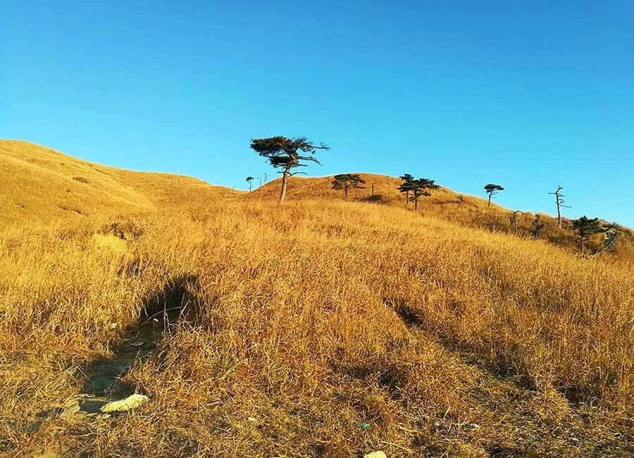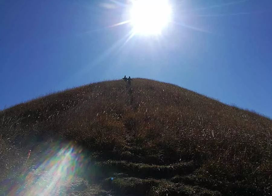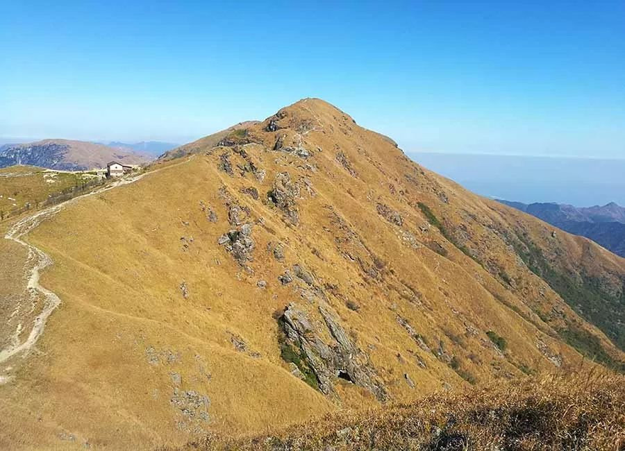 五小时后,直面九龙山,开始进入山顶神奇的金色草甸世界