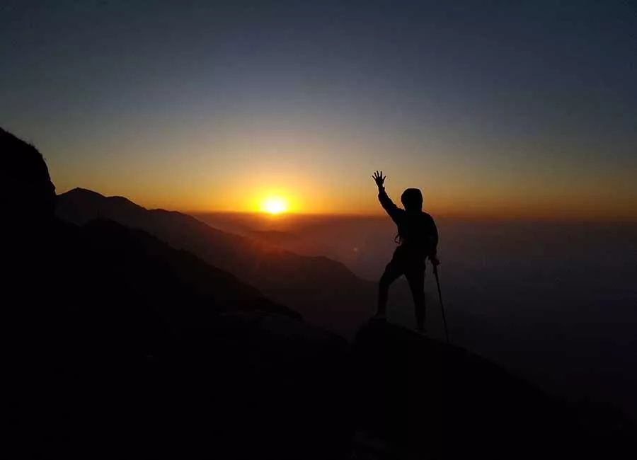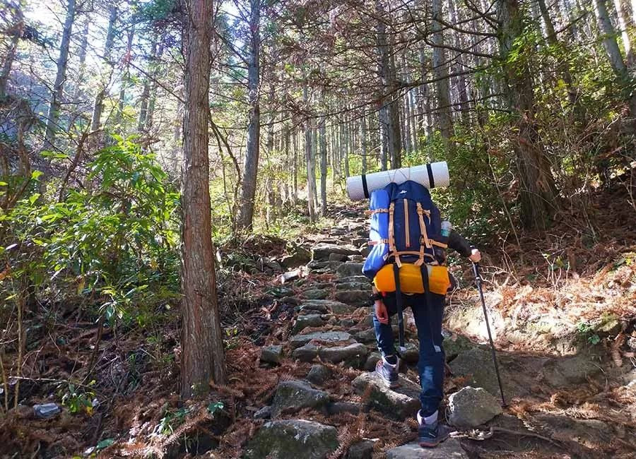早上七时开始上山