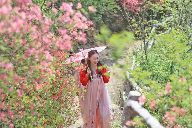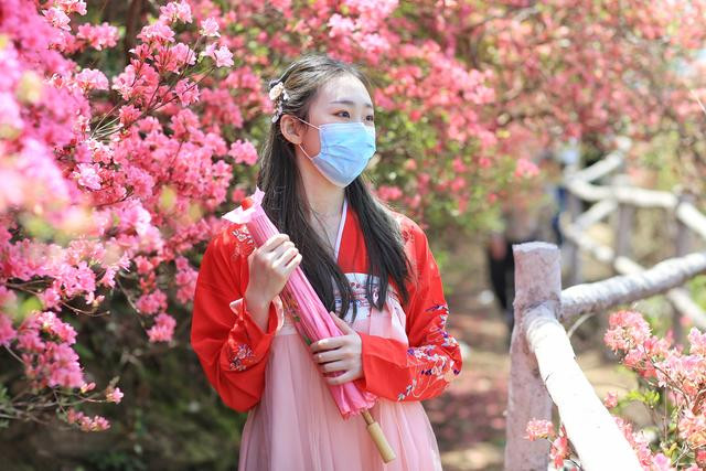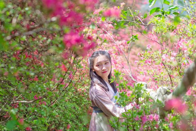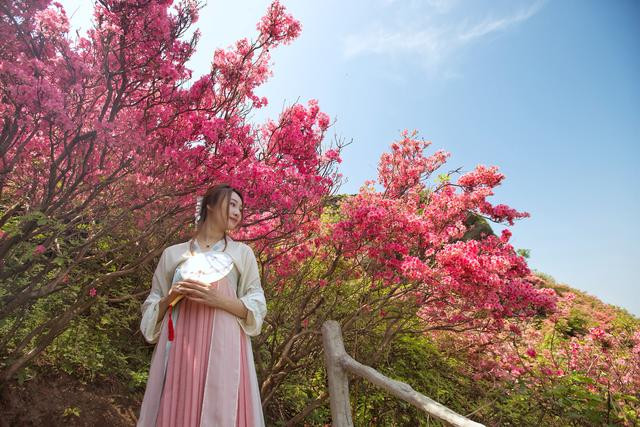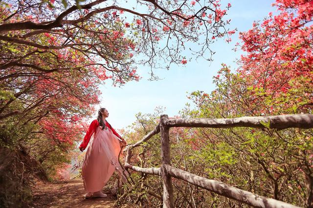 花山、花海、花洋,它们是云雾山的三个绝佳赏花地。花海荡漾、花山撩人、花洋热烈,目之所及无不是红得耀眼的杜鹃花。一朵朵,一簇簇,美得让人不忍挪开眼睛。那一抹红,比天边的云霞还要绚烂,那一抹红,比甜蜜的情话还要动听。杜鹃花海中,汉服小姐姐一颦一笑之间,就和云雾山的杜鹃花一起点亮了武汉最美的四月天了。