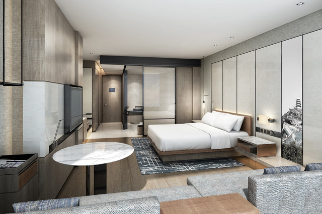 武汉卓尔万豪酒店拥有372间高雅客房,包括22间套房,超大的玻璃窗让室内充满自然光线,更将恢宏城景展现在宾客面前。每间客房都配有万豪品牌的特色软垫层床垫和豪华羽绒被,另外还有55英寸液晶电视和高速无线网络连接。