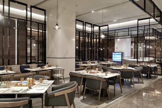 喜来登品牌标志性的盛宴全日餐厅采用色彩明丽的挂毯装饰,营造出活力四射的氛围。选用最为新鲜的食材烹饪出的一系列国际美食,以自助及零点的方式供客人选用。