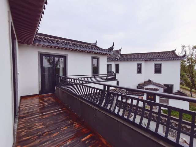 “栀子苑”的二层是两间客房,其中一间是套房,套房内有独立的小客厅和活动空间,同时二层有露台。站在露台看着远处的风景,既闲适又惬意。