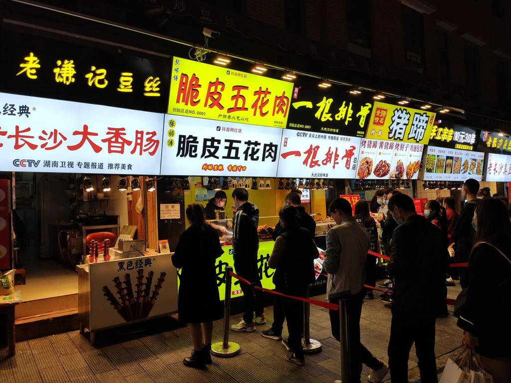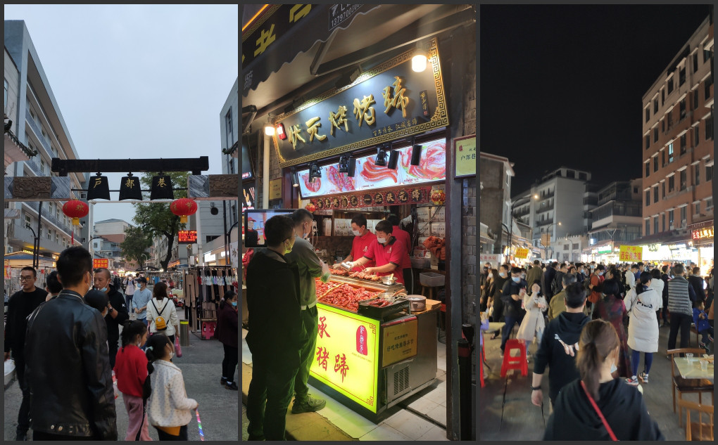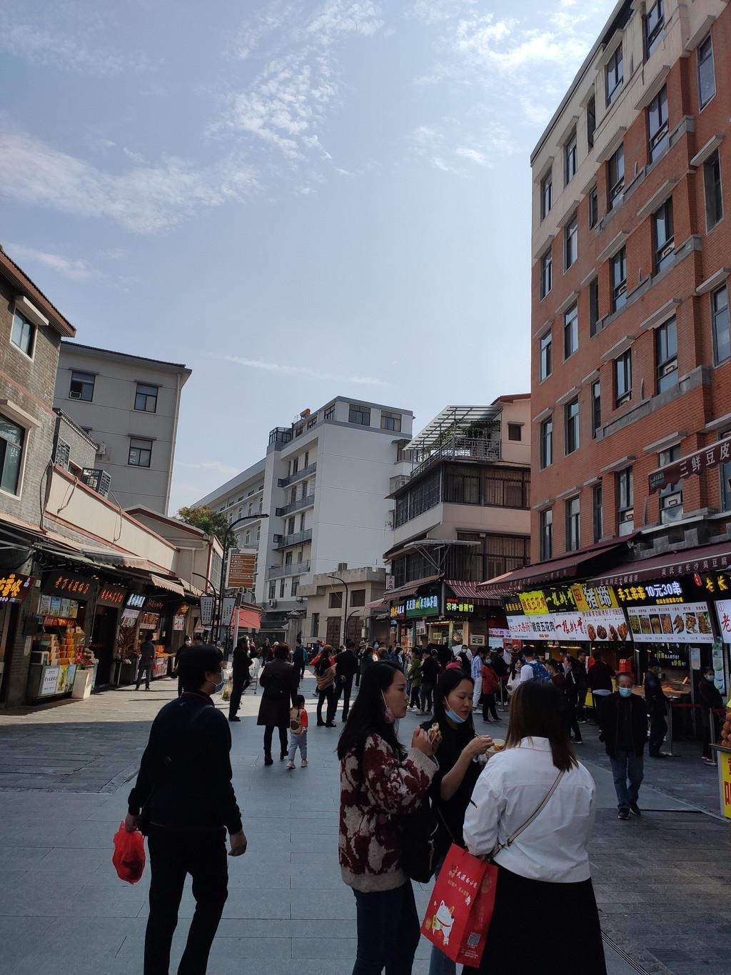 酒店出步行(约2分钟)到达户部巷(美食土特产一条街,不少名句好吃的店铺,但一定要认准店铺品牌,正宗店旁边有有很多山寨的,找人最多的店铺去排队,在这里吃了一根排骨、状元猪蹄,吃饱就有力气走路去中华路码头,看夜景)。