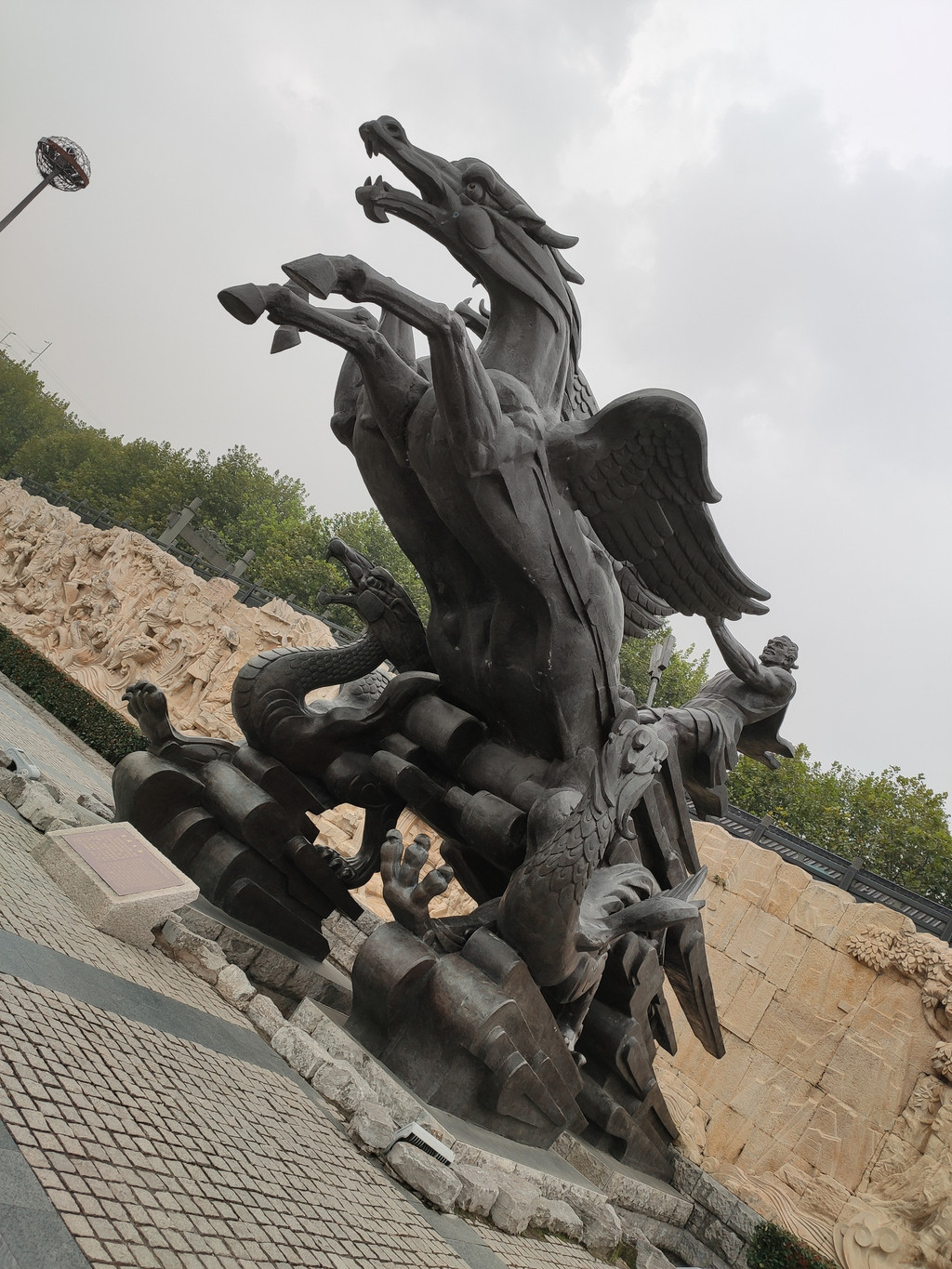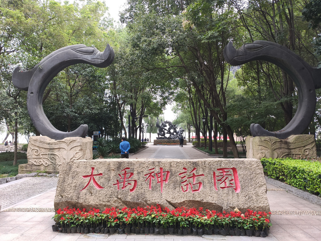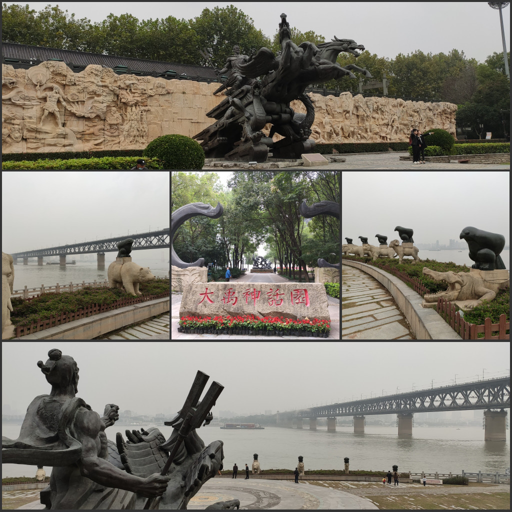 晴川阁步行(约2分钟)到达大禹神话园(一个大禹治水故事为主题的公园,非常的大,里边的雕像也极有气势,时间充足可以逛—逛。