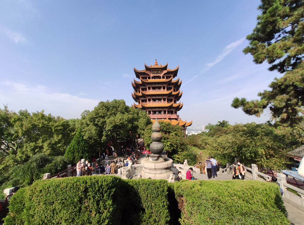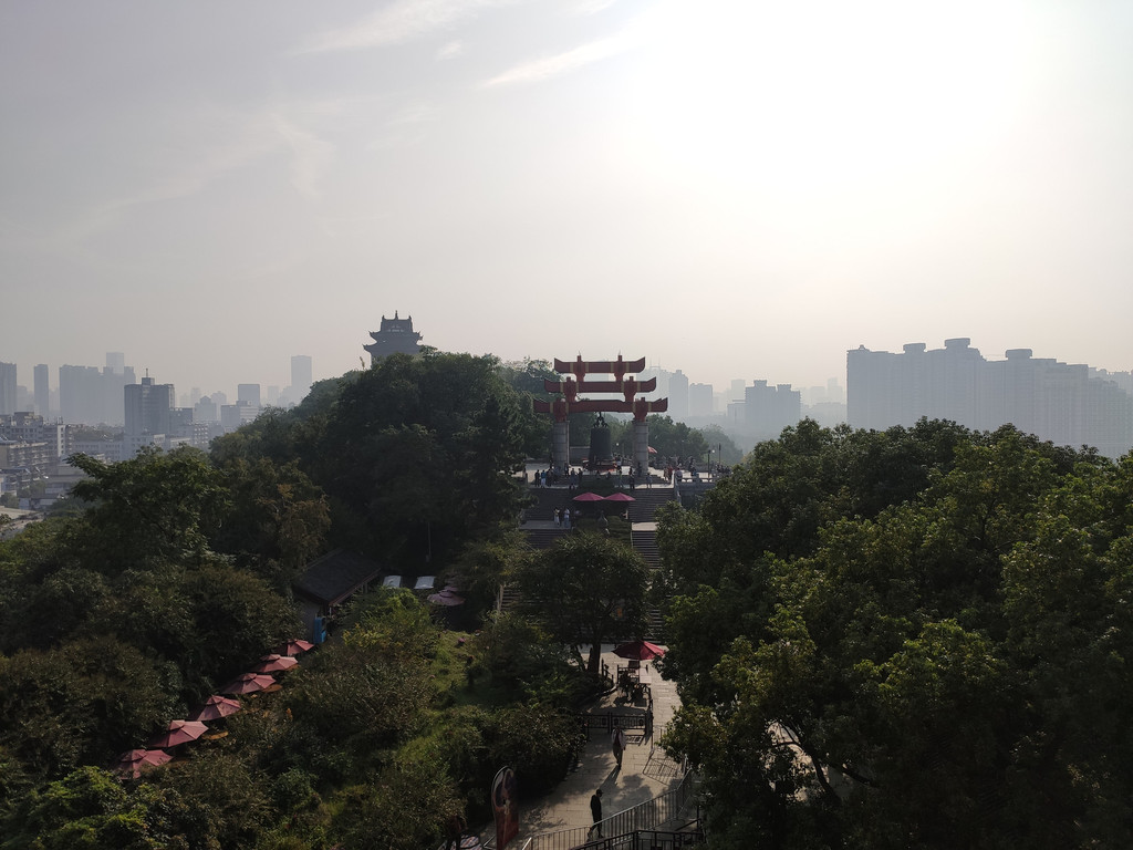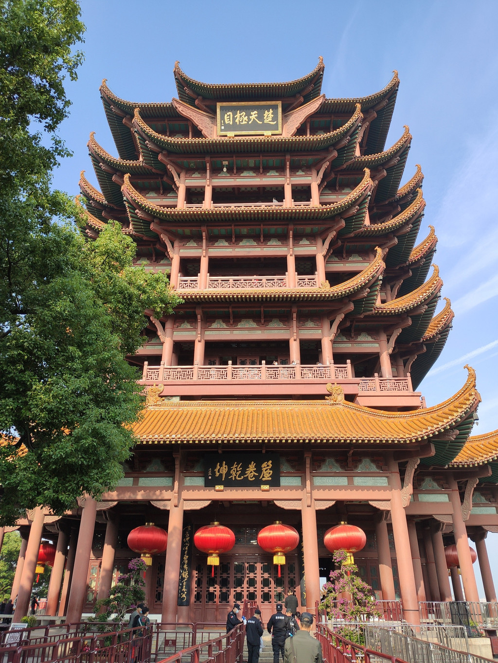酒店出步行(约11分钟)到达黄鹤楼(这是一个1985年重建的,和我们学的古诗的描述的并不完全是同一幢东西了,而且楼位置也不在同当年一个地方,所以来感受古诗情怀的就用错情感了。但来这里看下看武汉的景色倒不错的,毕竟是最高的几个观察高点之一,风景非常好,旁边还配套有小公园,有山有水,整个景点可以游玩两小时左右)。