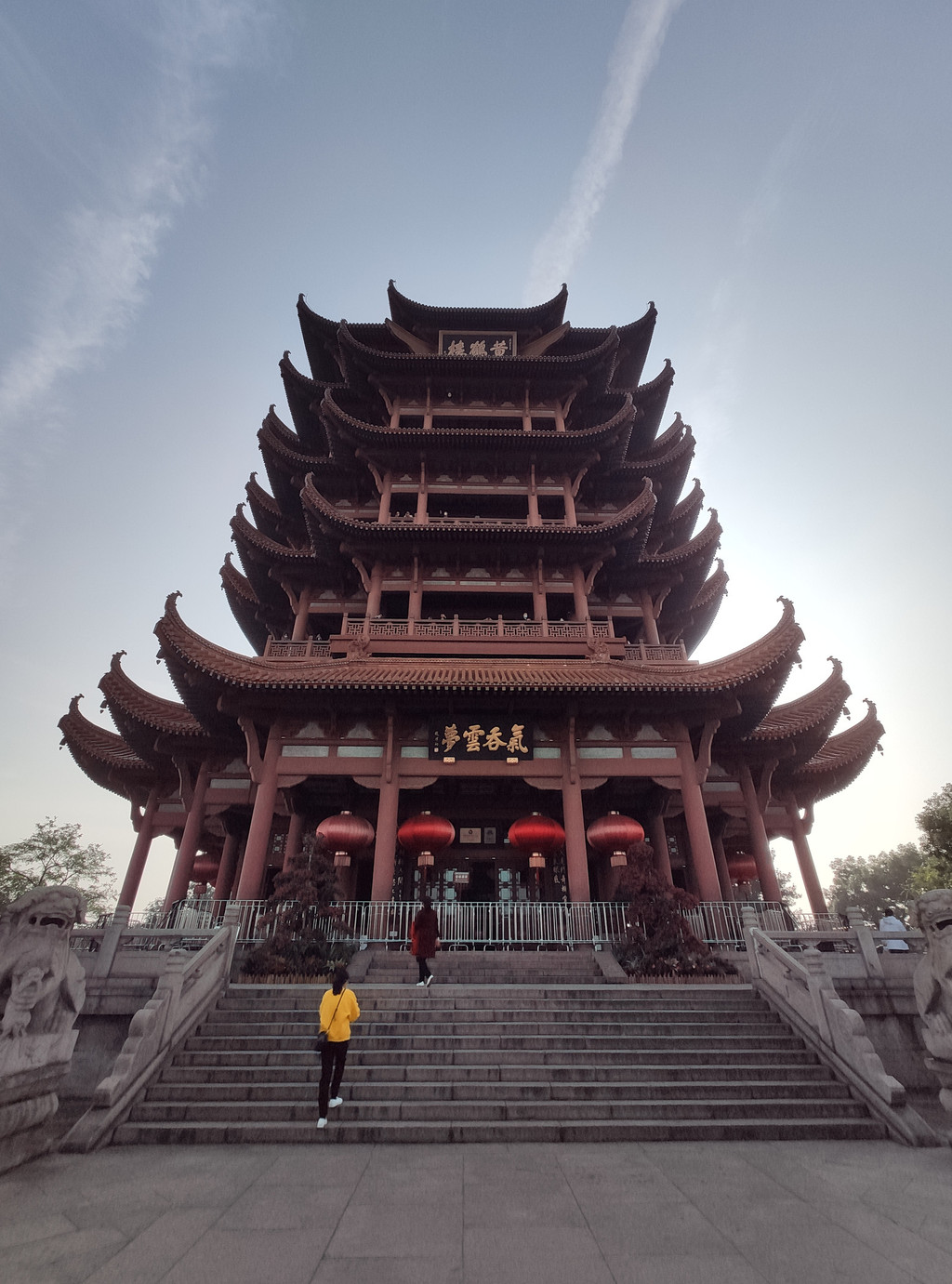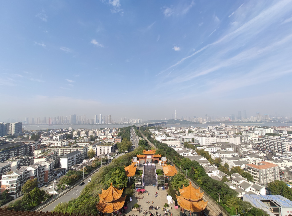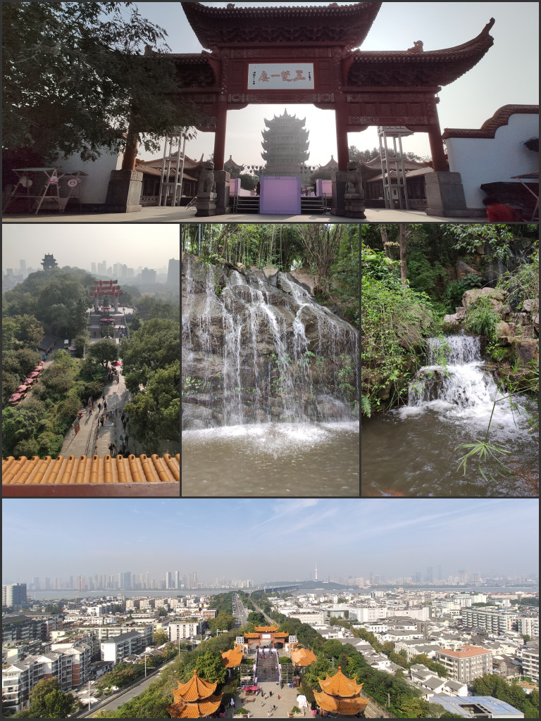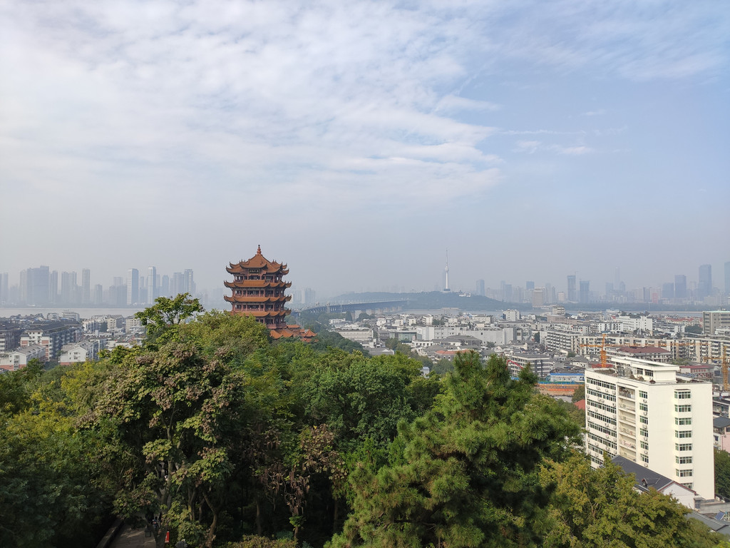 酒店出步行(约11分钟)到达黄鹤楼(这是一个1985年重建的,和我们学的古诗的描述的并不完全是同一幢东西了,而且楼位置也不在同当年一个地方,所以来感受古诗情怀的就用错情感了。但来这里看下看武汉的景色倒不错的,毕竟是最高的几个观察高点之一,风景非常好,旁边还配套有小公园,有山有水,整个景点可以游玩两小时左右)。