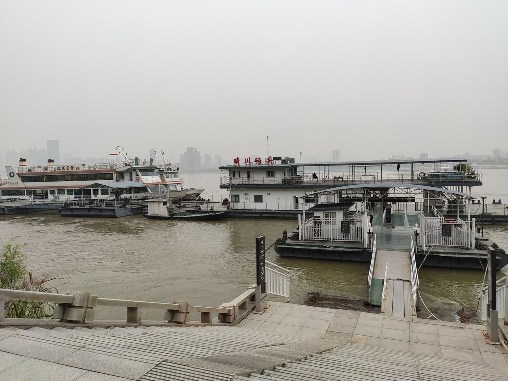 晴川阁步行(约2分钟)到达晴川码头(坐渡轮的地方,可以直达江对岸,想坐船的可以来这里前往对面景区)。
