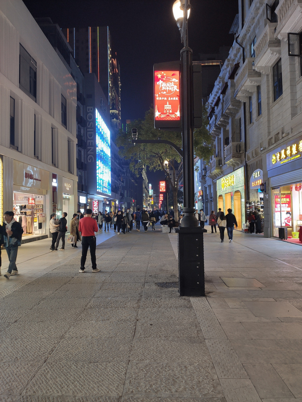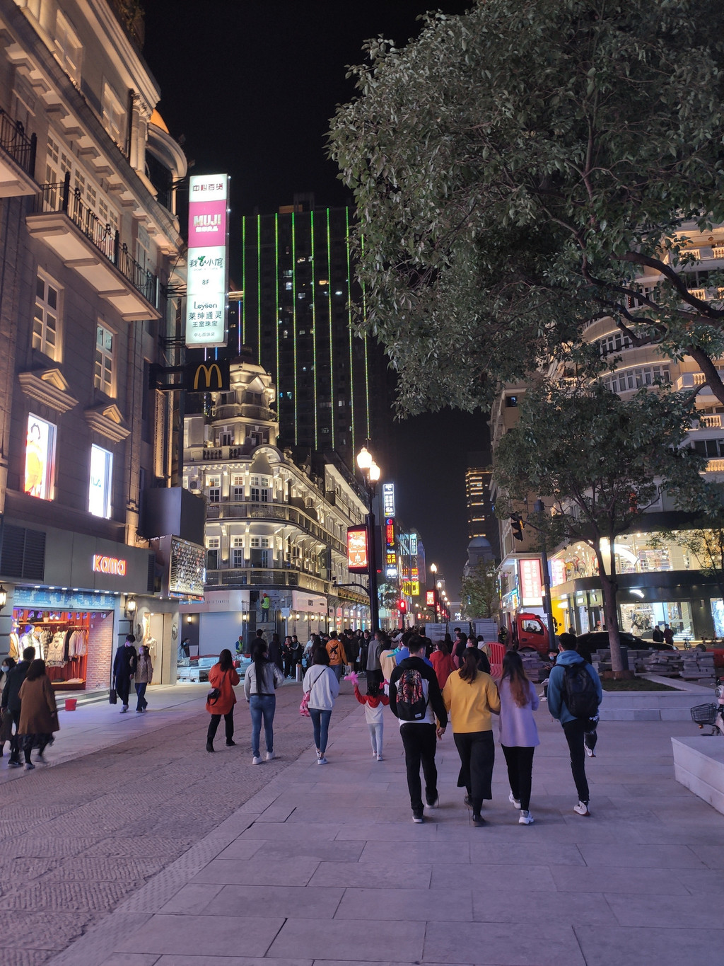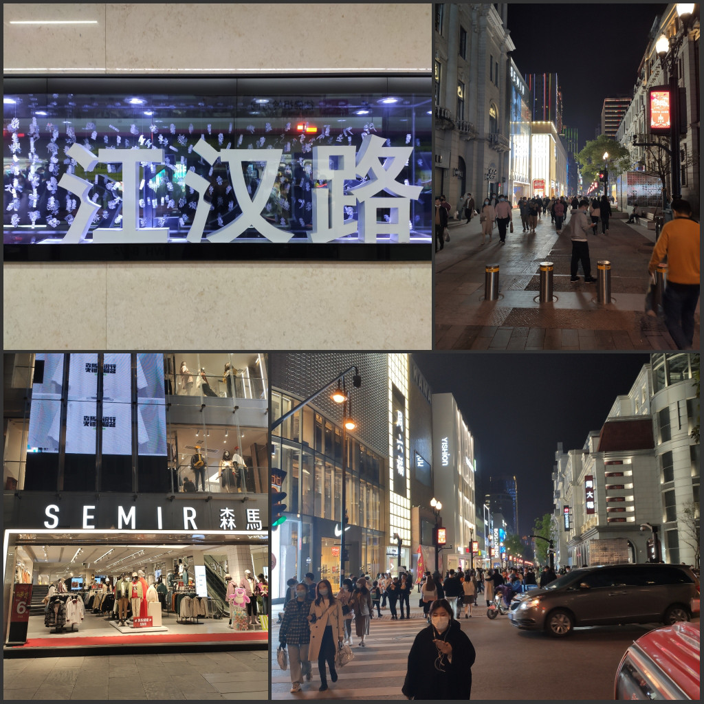 酒店出步行(约3分钟)到达江汉街(晚上灯光很漂亮,主要是卖东西,等同上海的南京路或广州的北京路,但目前在非常大范围的重建改造,有一半的地方是没营业的,估计要十二月后来才能看到它崭新的全貌吧)。