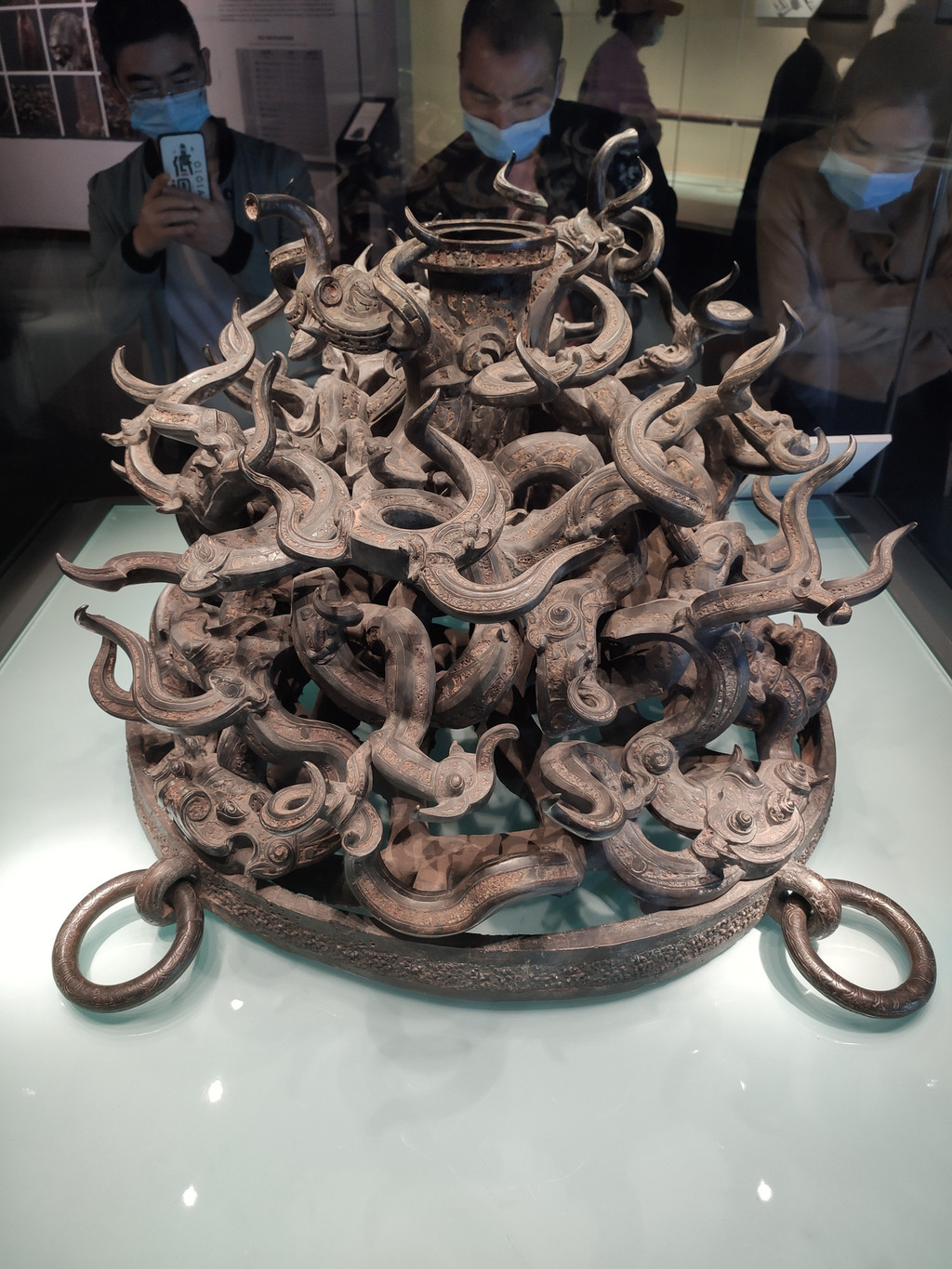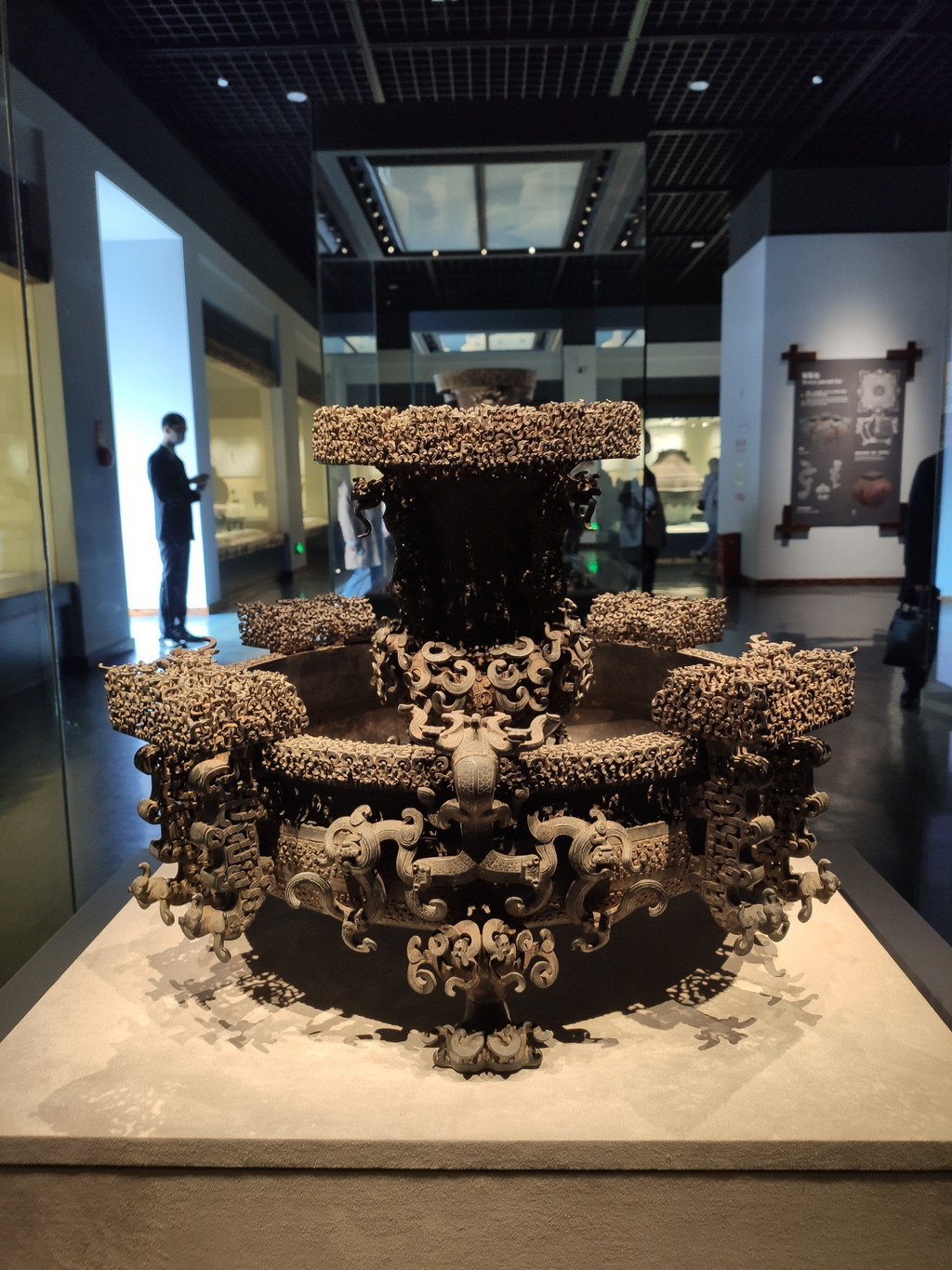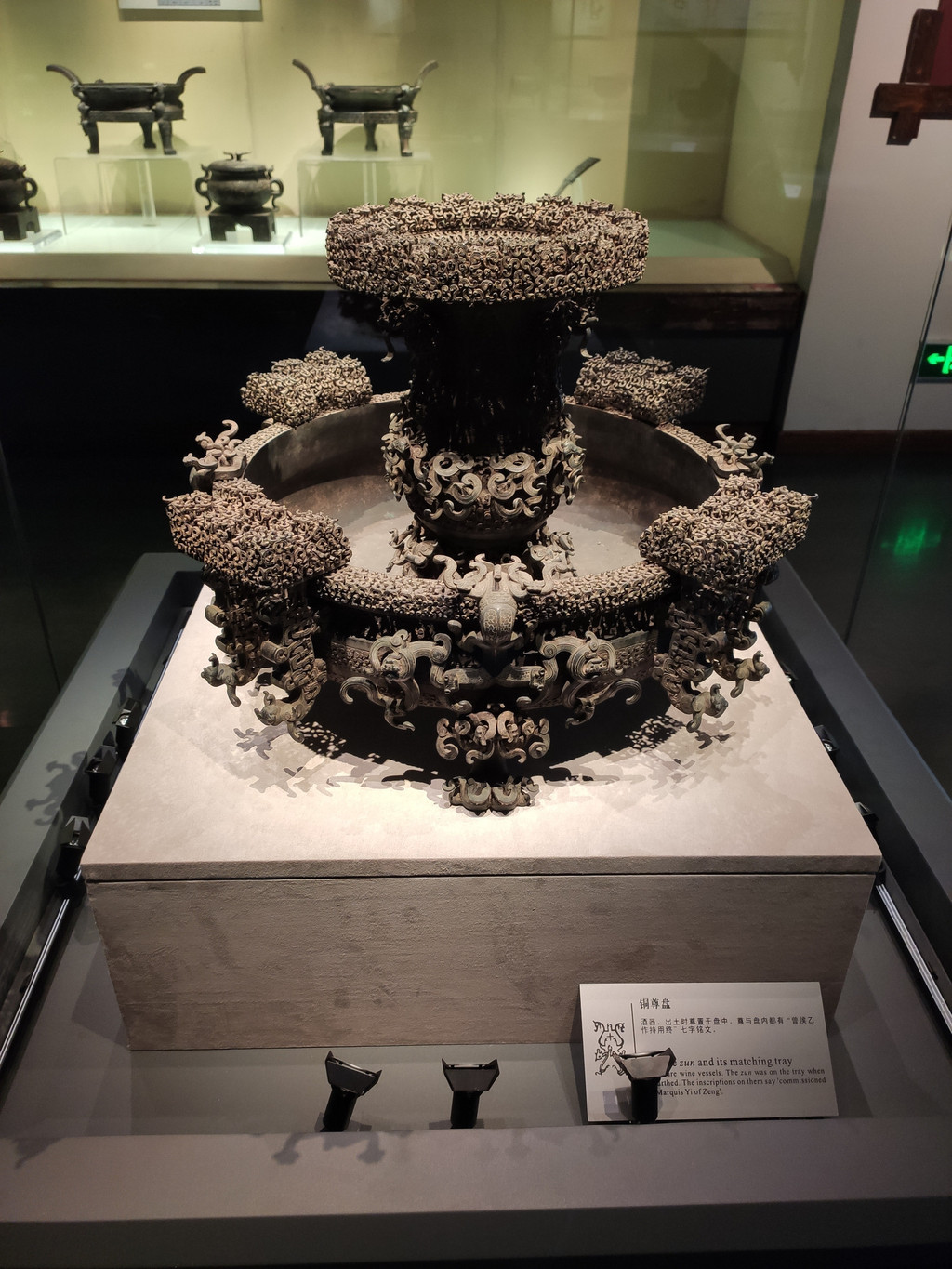 湖北省美术馆步行(约1分钟)到达湖北博物馆(重中之重,必来点之一,重量级的东西都在一层,有太多国宝级的展品,我呆了足四个小时还没完全看够。展馆有非常详细的手机APP解说可以自行扫码听取,很详细生动,看着精美的展品,听着动人的讲解,实乃一大享受!这个馆太热门了,入场人次控制非常严格,每天只可预约4000人左右,所以最好提前一天预约,不然很有可能到了大门口而不得其门而入。)