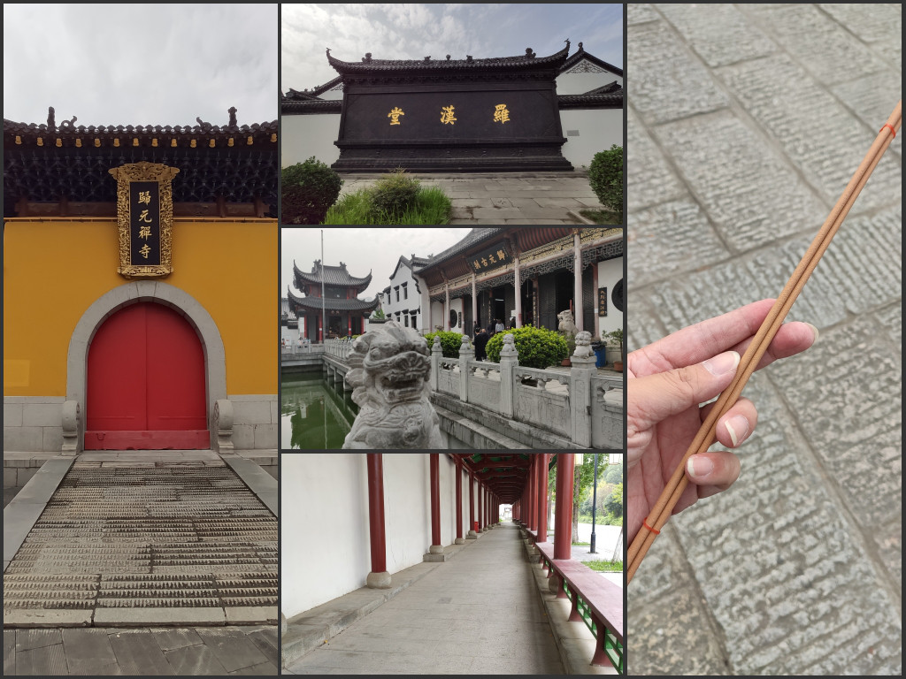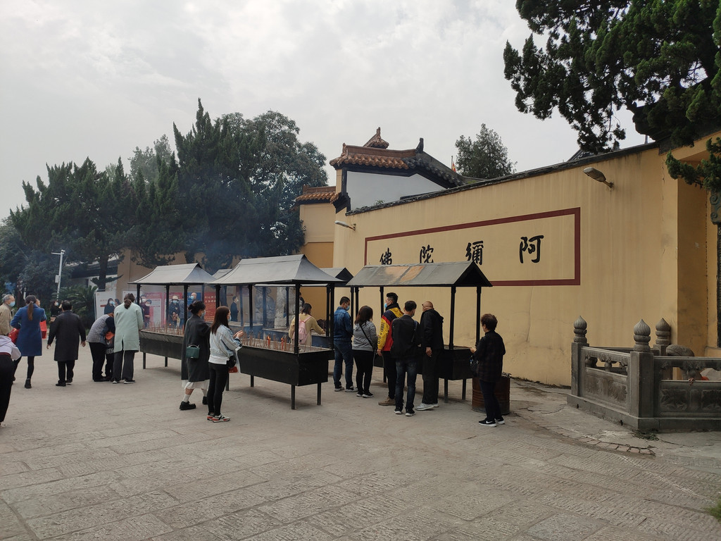 晴川阁骑行(约20分钟)到达归元禅寺(在入口处需扫码购票入园,当时不明白为何票的名字叫电子香花劵,进去后才明白里边可以免费领三支香祭拜,门票应该就是提前付的香火钱,寺庙不大,但听说香火是全武汉第一的,可以进来许上一愿)。
