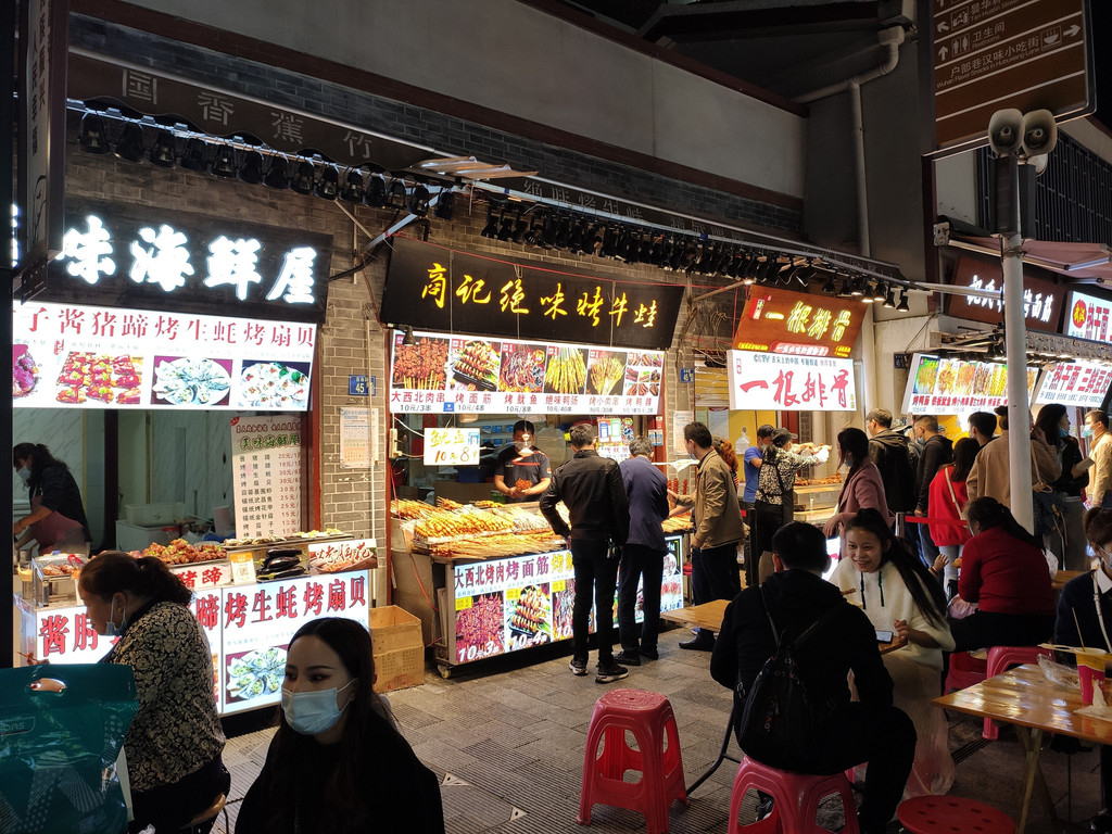 酒店出骑行(约7分钟)到达虎泉夜市(个人认为自己这趟武汉行踩的最大的坑了,其实就是一个大市场,很多大排档是了,没啥有份量的食店,在那里全无收获,不建议去,除非很喜欢吃地摊烧烤)。