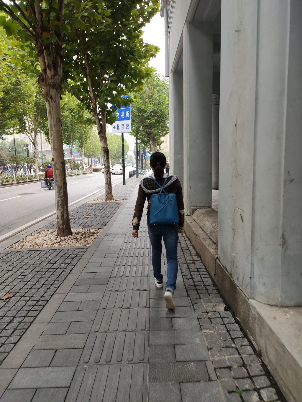 江汉区街景随拍(当时是拍这个女孩的,因为她很有趣的把单肩包背成了书包的样子!)