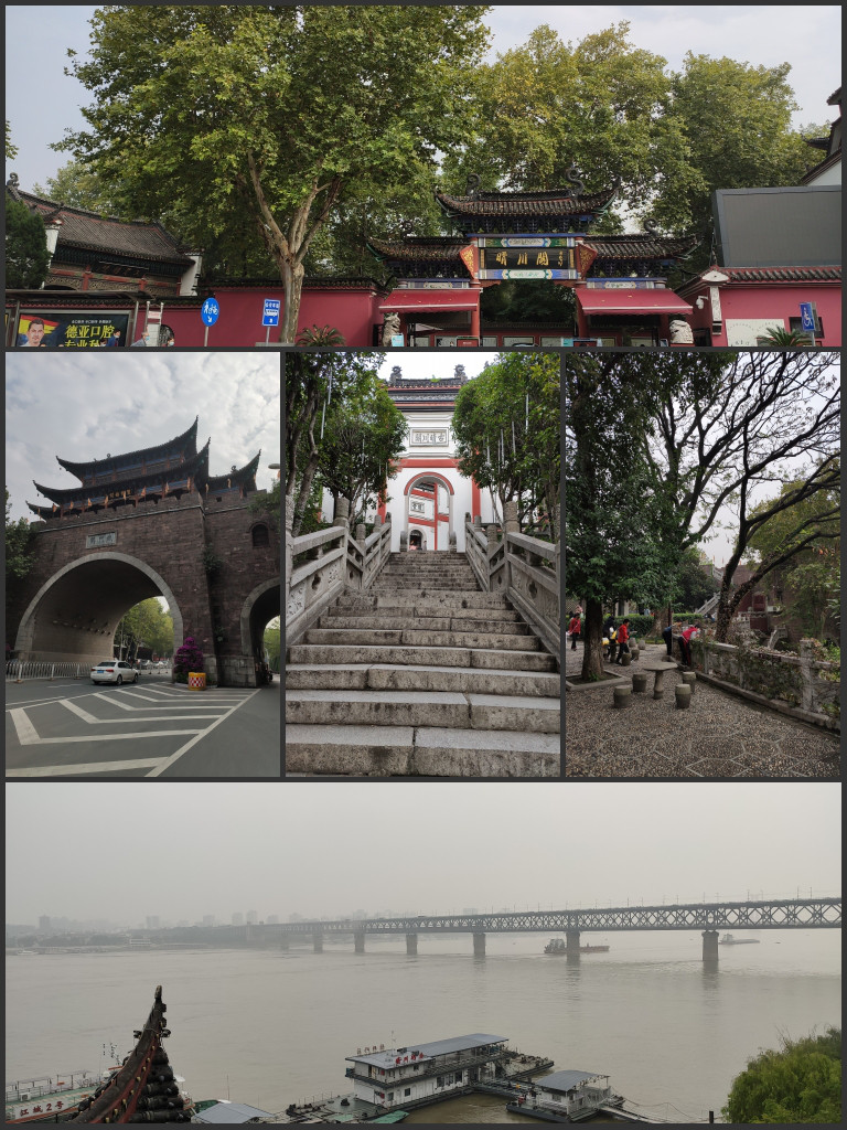 酒店出骑行(约20分钟)到达晴川阁(一幢近代重建的建筑,与黄鹤楼遥遥相望,而且旁边不远就是武汉长江大桥,人不会太多,坐在楼上望着江岸与桥上的车水马龙,感觉很惬意,值得一来)。
