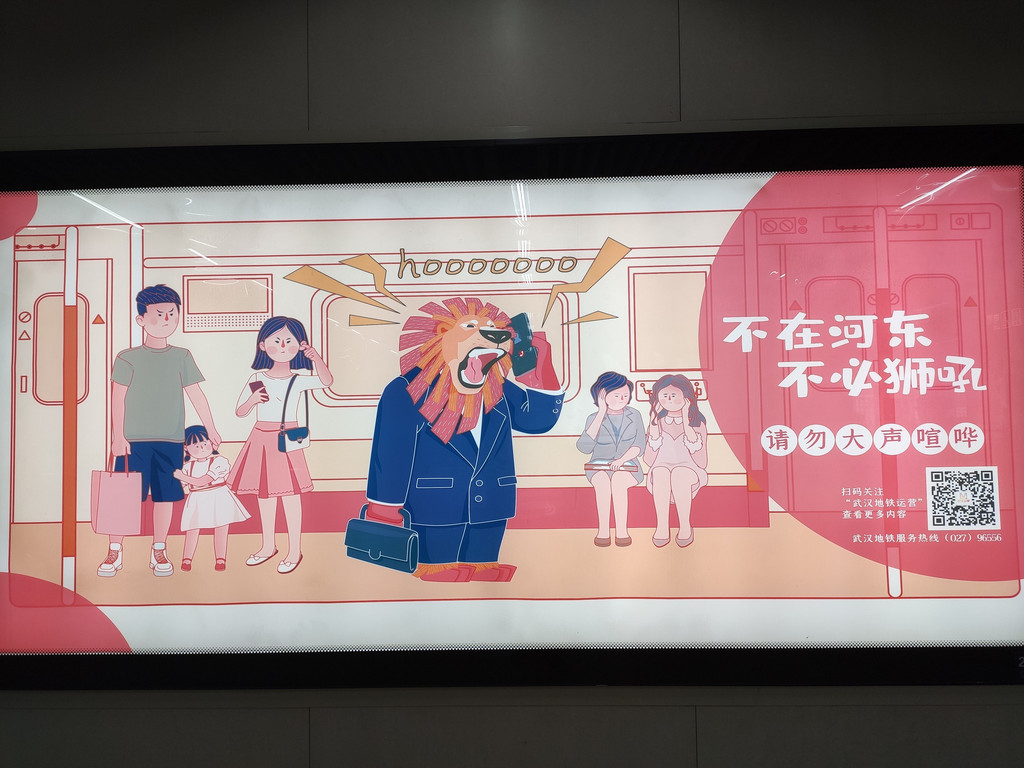 武汉地铁的宣传标语,看来武汉人也是很清楚自己的大嗓门啊~