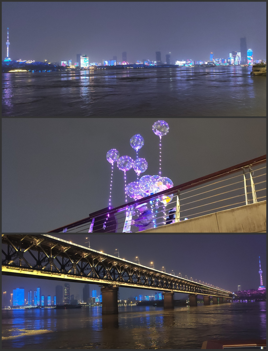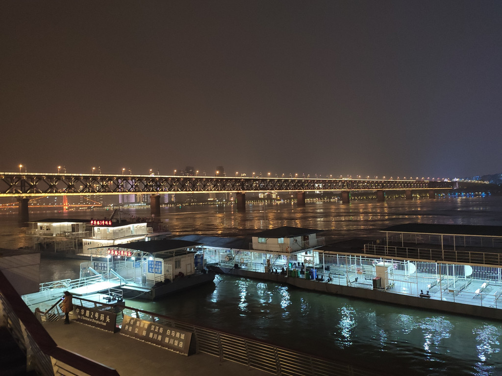 酒店出步行:(约5分钟)到达中华路码头(主要来这里看夜景,码头很长,这里的居民喜欢在码头的文化长廓的小空间里踢毯子,水准都很高,这么狭窄的地方都可以玩得这么起劲,夜景很美,但与上海和香港的夜景相比还是有距离的,武汉长江大桥是吸晴所在。有空闲也可以这里登船游江面,我没有参加,我更喜欢在江岸边踱步的感觉)。
