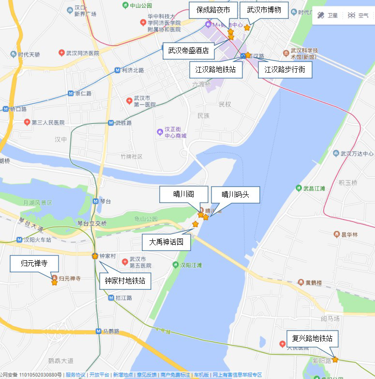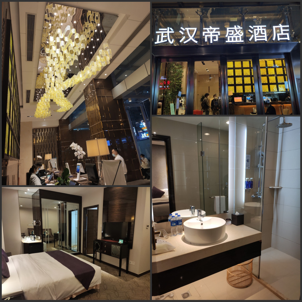 到达武汉直接在机场按指示去坐地铁,武汉的地铁全部入口都要求戴口罩进入、量测体温并扫描大型行李,让人安心,最少在广东就没有这里做得这么到位。在地铁行进的过程中终于理解到了武汉的“大”,从机场到达江汉路就用了整整一小时,这还只是地铁二号线一半的路程而己。我选的是江汉路为自己的第一站点,住宿就在地铁站不远的帝盛酒店(首站选的酒店非常满意,房间够大,够干净,也足够安静,喜欢)。