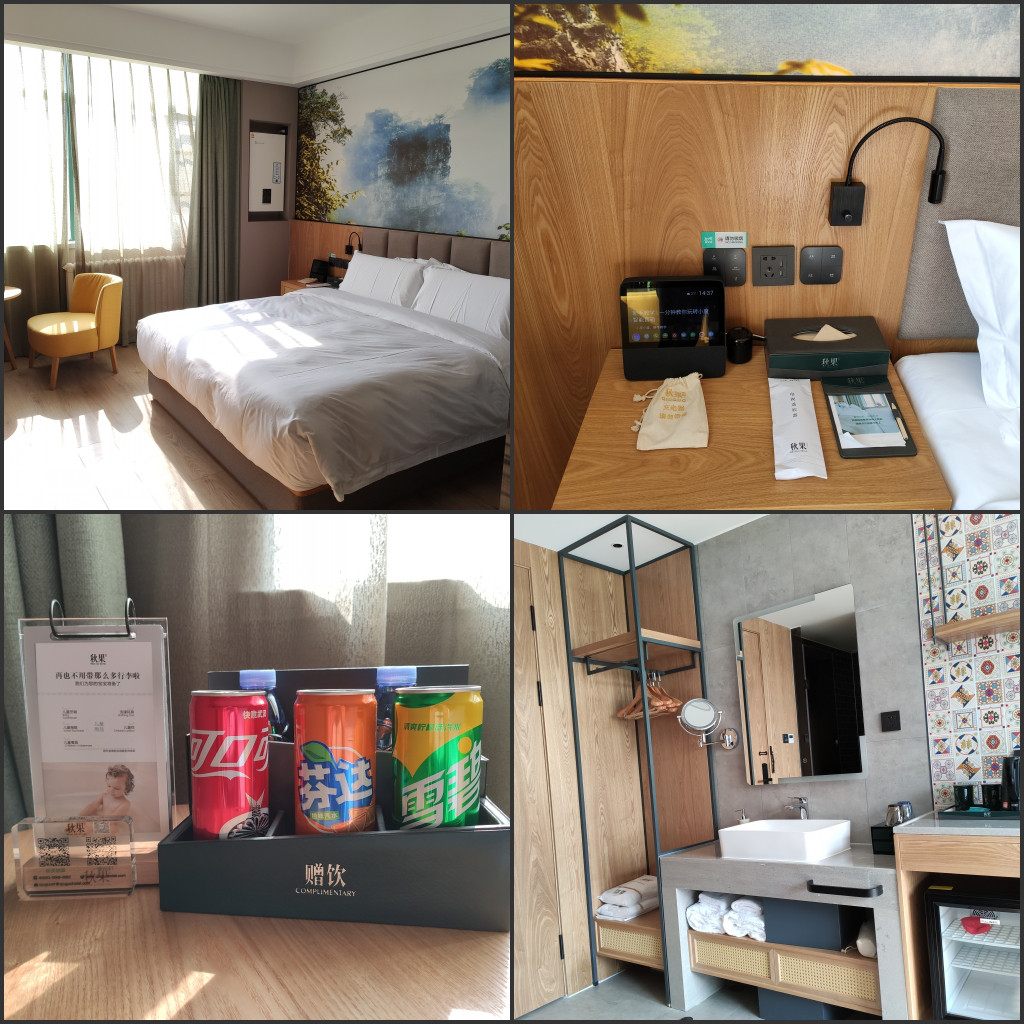 秋果酒店(这次行程最满意的一间酒店,高科技感十足,房间配备百度语音助手,房间所有电器均可语音操作,首次住这类酒店感觉很好玩。配套的饮料和用品都较有档次,几乎我都搜刮走了,嘻嘻。服务也超好,本来这次住房没附送早餐的,前台看我下去退房时是早餐时段,就送我早餐劵了,非常感谢)辐射景点以下: